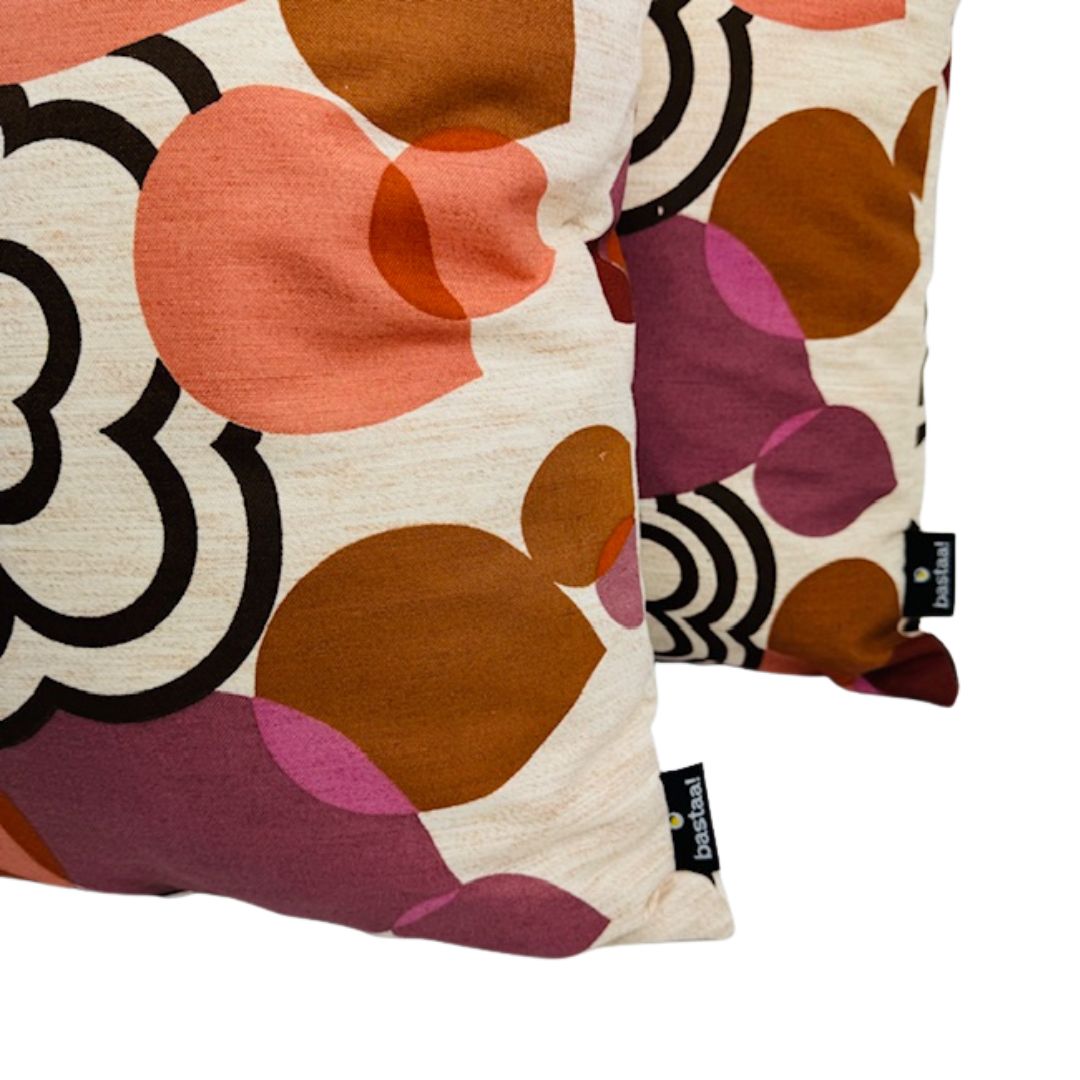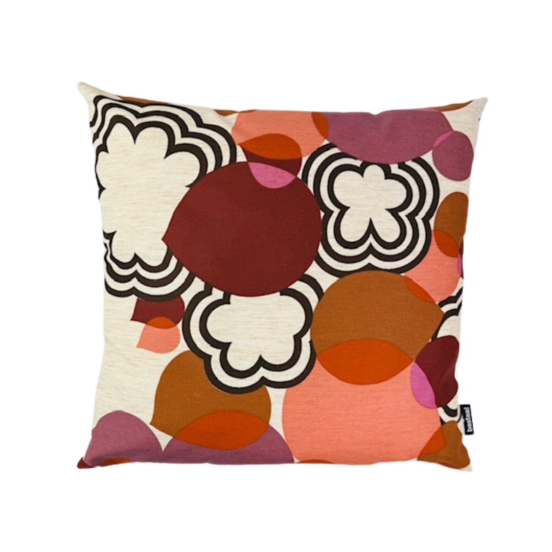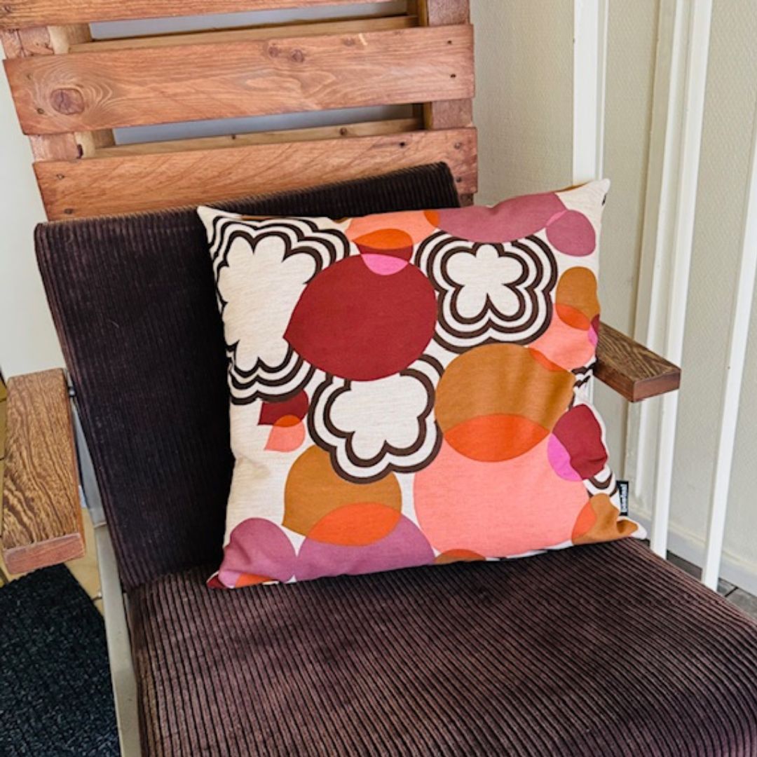 Handgemaakt kussen van vintage stof. Retro print in prachtige kleuren. Elk kussen is uniek en in verschillende maten verkrijgbaar.