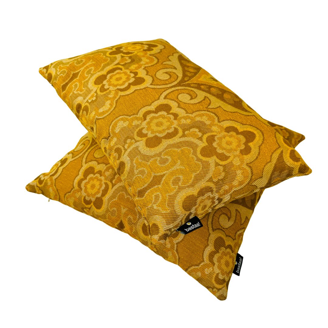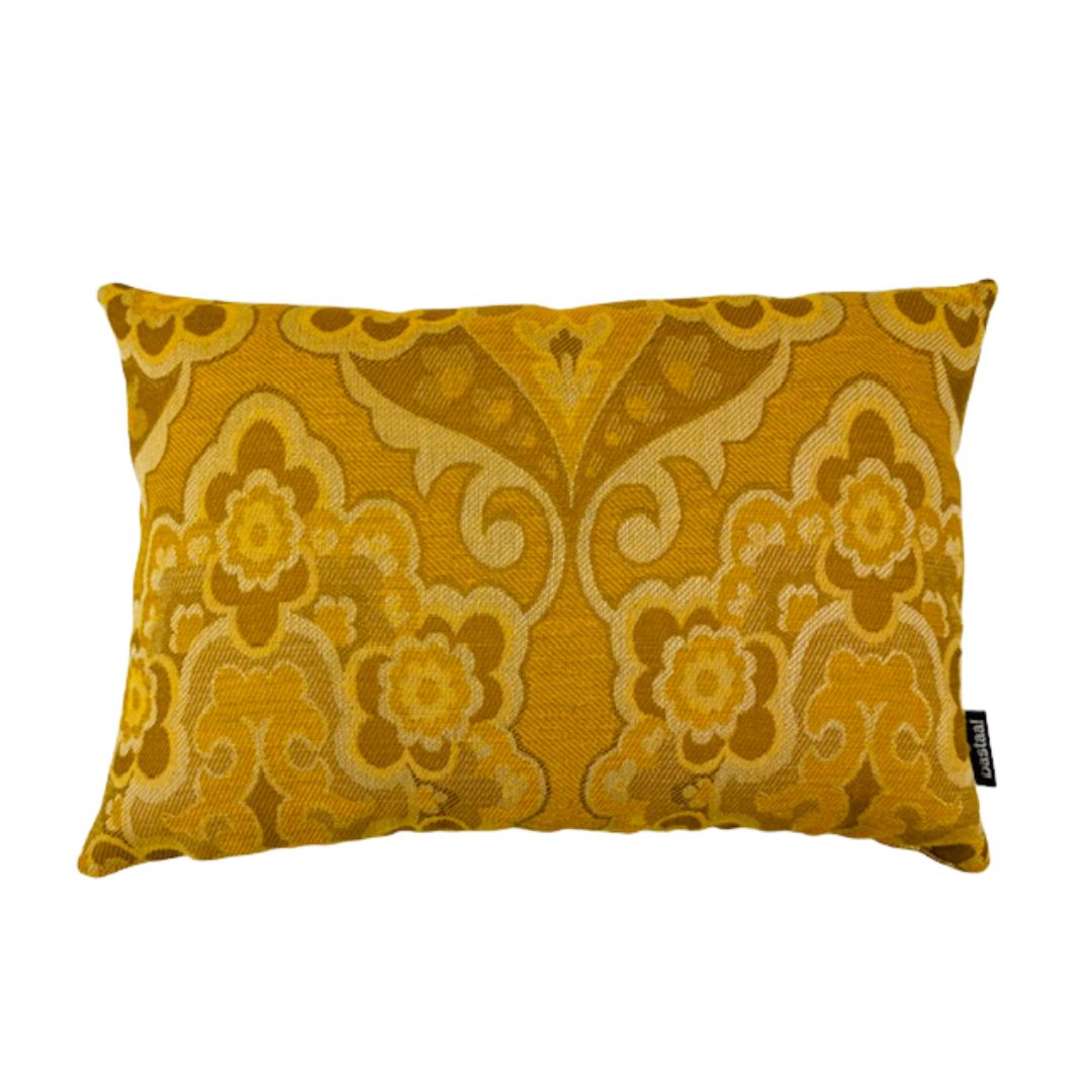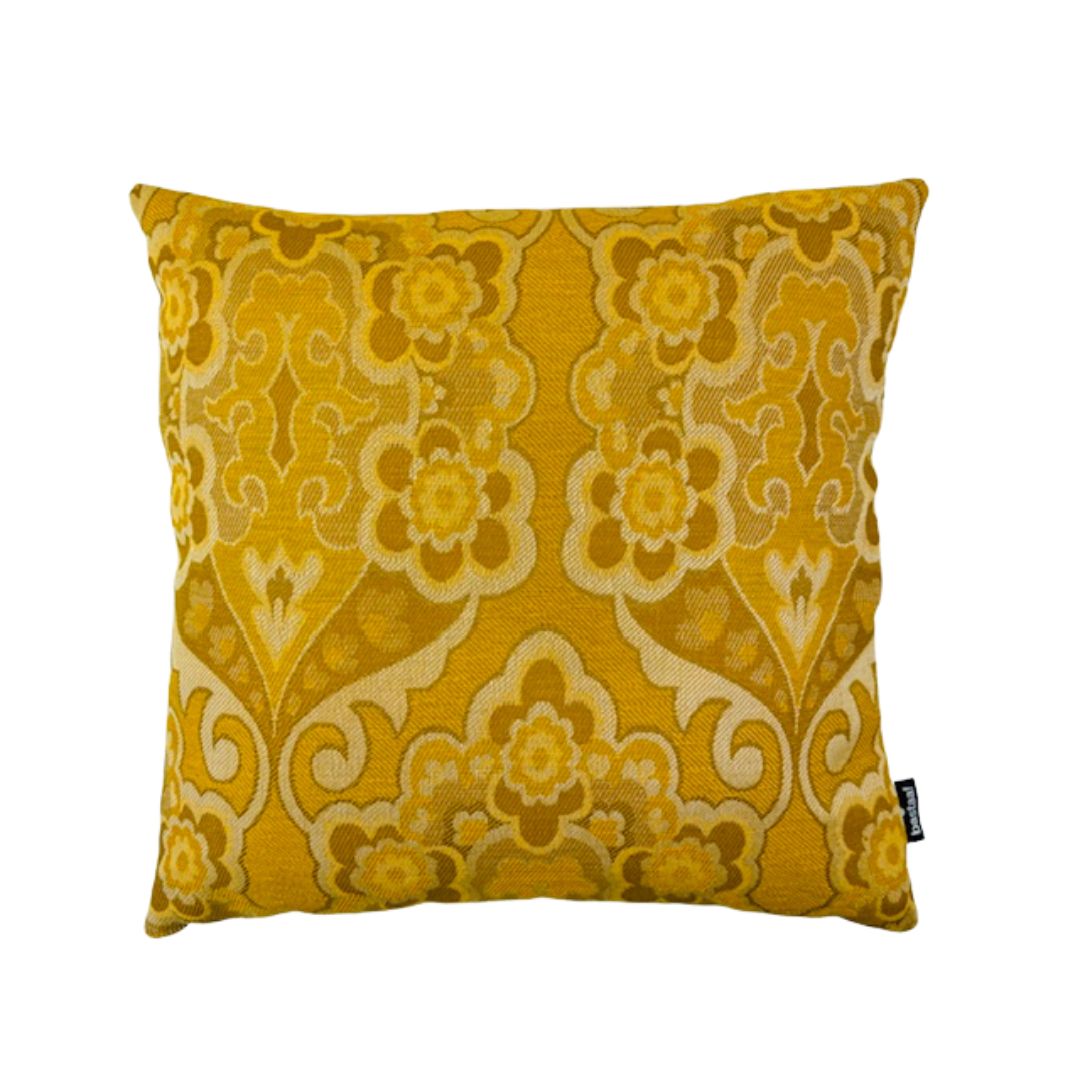 Retro kussen Astrid - oker geel bloem - vintage stof