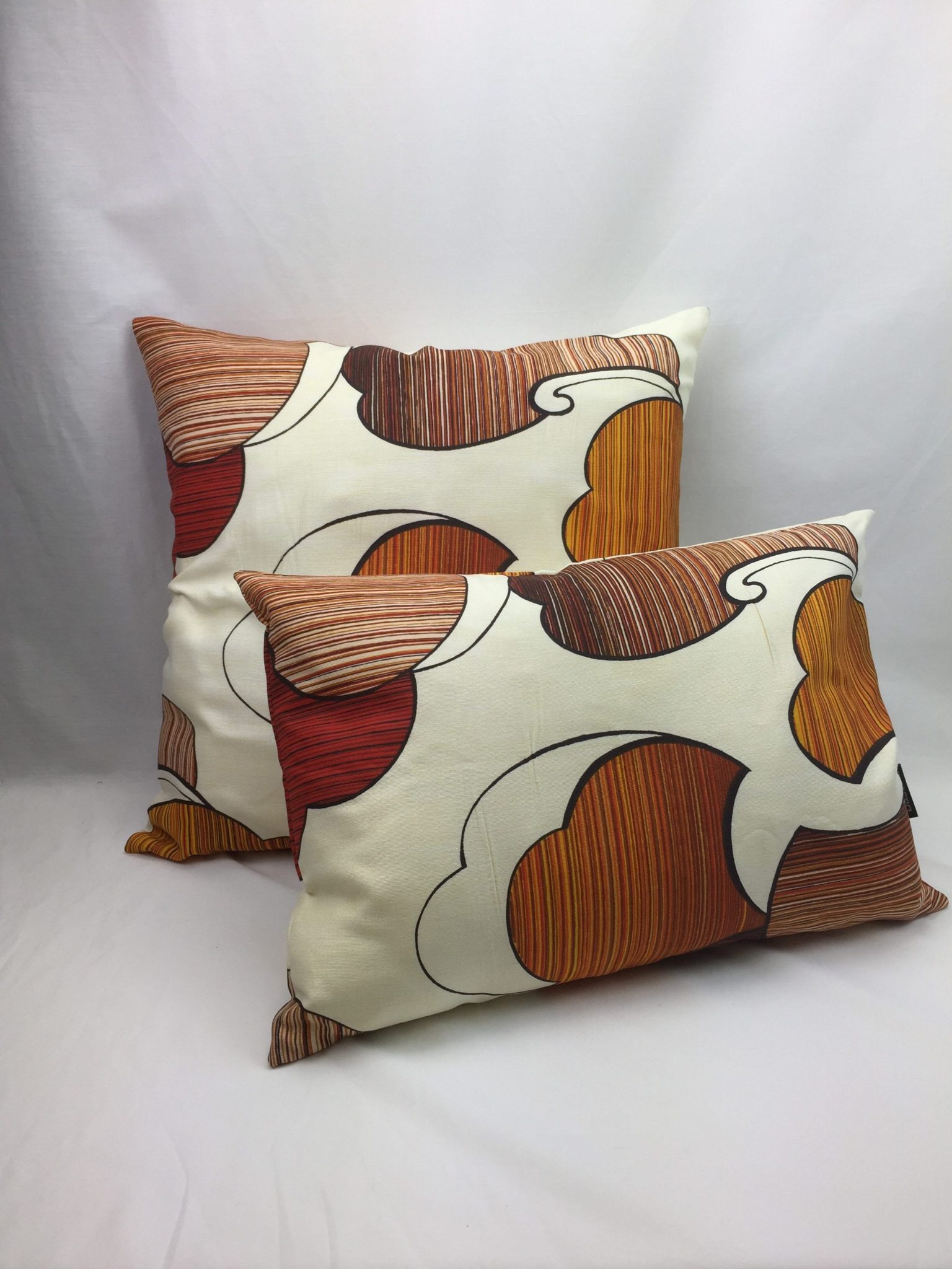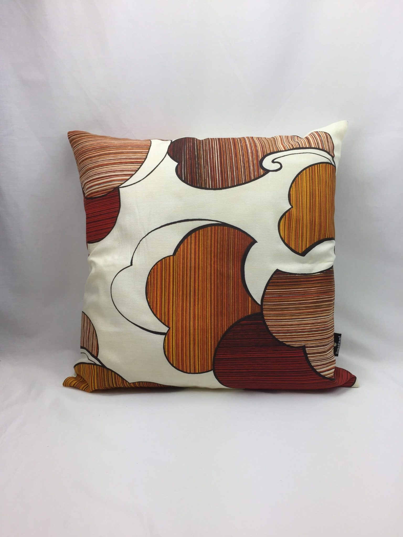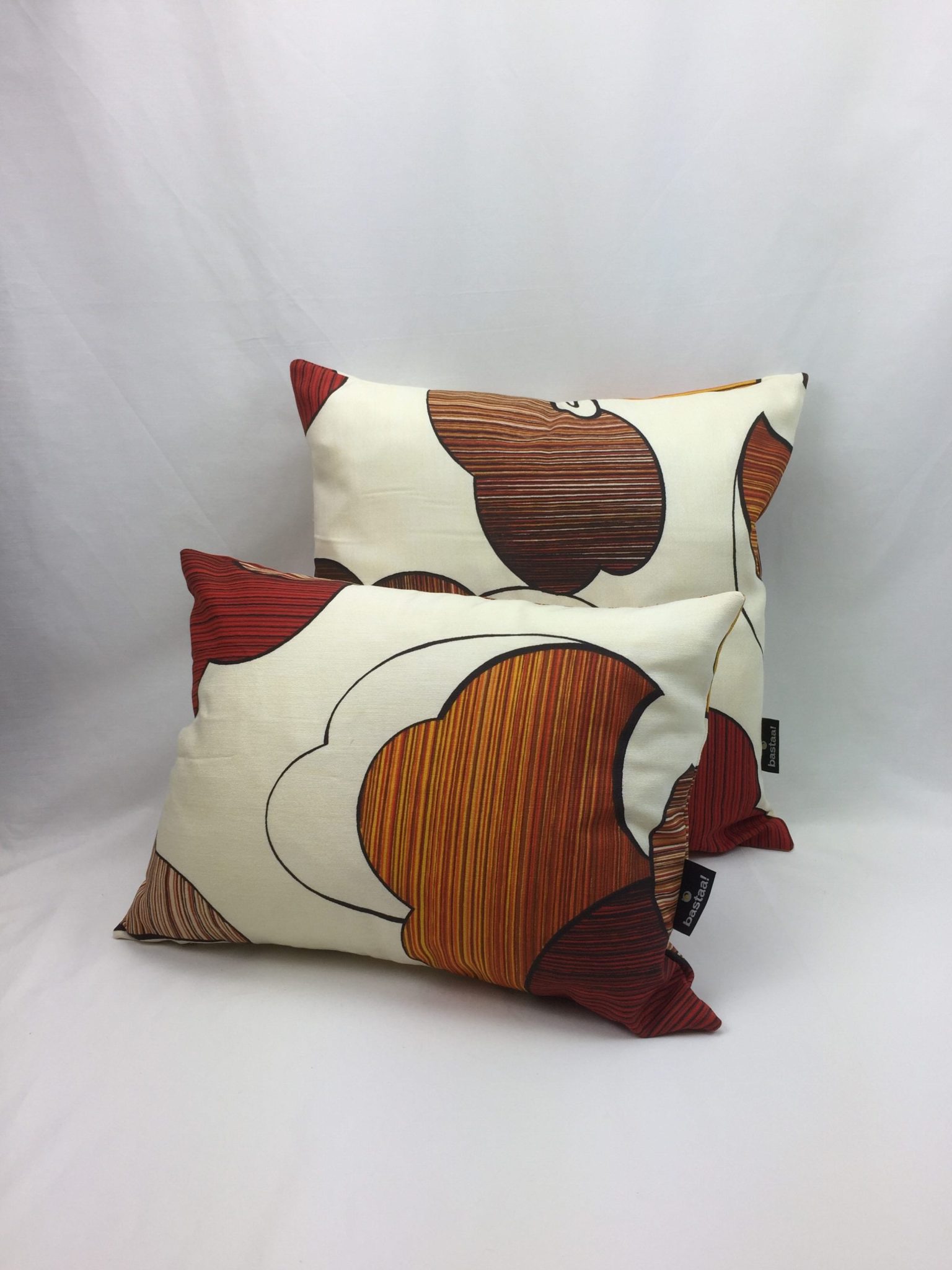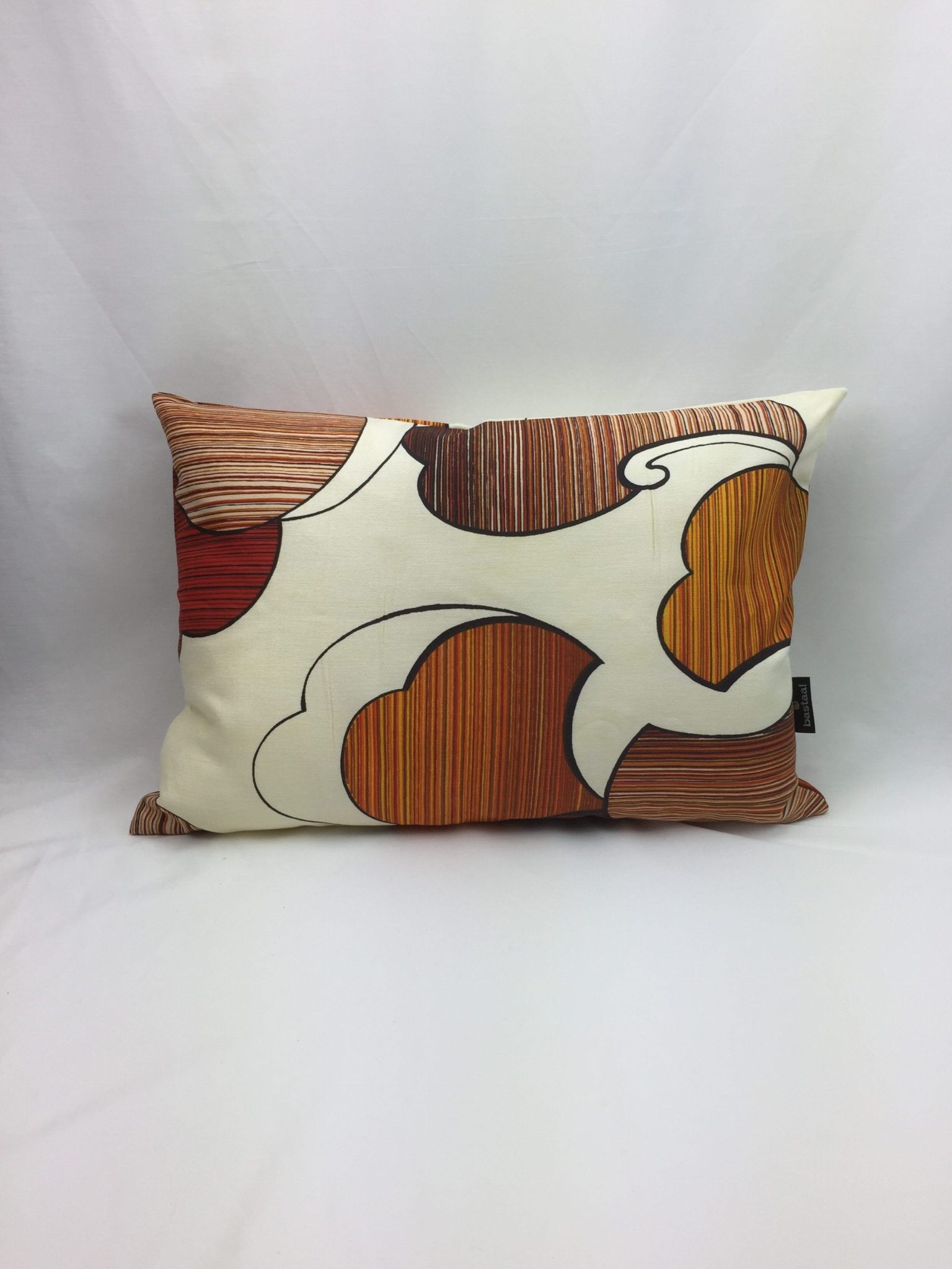 Retro kussen handgemaakt van originele jaren ’70 stof! Breng de retro sfeer terug in huis, puur vintage. Elk sierkussen is uniek en handgemaakt en natuurlijk inclusief binnenkussen. Het kussenhoesje is voorzien van een blinde rits, zodat je het hoesje ook kunt wassen. Verschillende formaten.