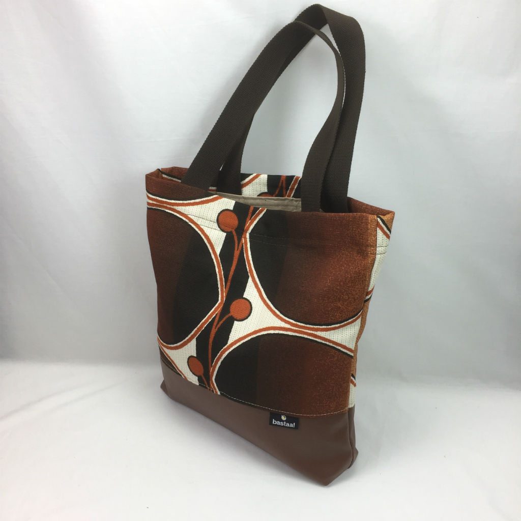 Bastaa! heeft deze exclusieve tassen in samenwerking met het atelier ontworpen en gemaakt. Natuurlijk zijn voor deze tassen de originele jaren ’70 stoffen van Bastaa! gebruikt. Gecombineerd met nieuwe materialen geeft dit een fantastisch mooie en praktische tas, en daar houden we van! Het is een fijn formaat tas, ideaal voor je dagelijkse bezigheden. Neem hem mee naar je werk, voor je boodschappen, gebruik hem als handtas etc.