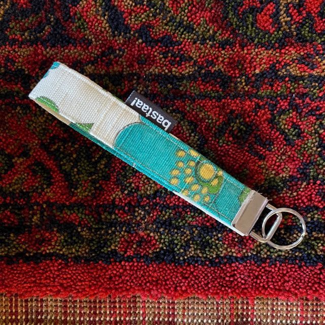Handgemaakt sleutelhanger van vintage stof. Met sleutelring of musketonhaak. Met deze polshanger vind je je sleutebos makkelijk terug in je tas.
