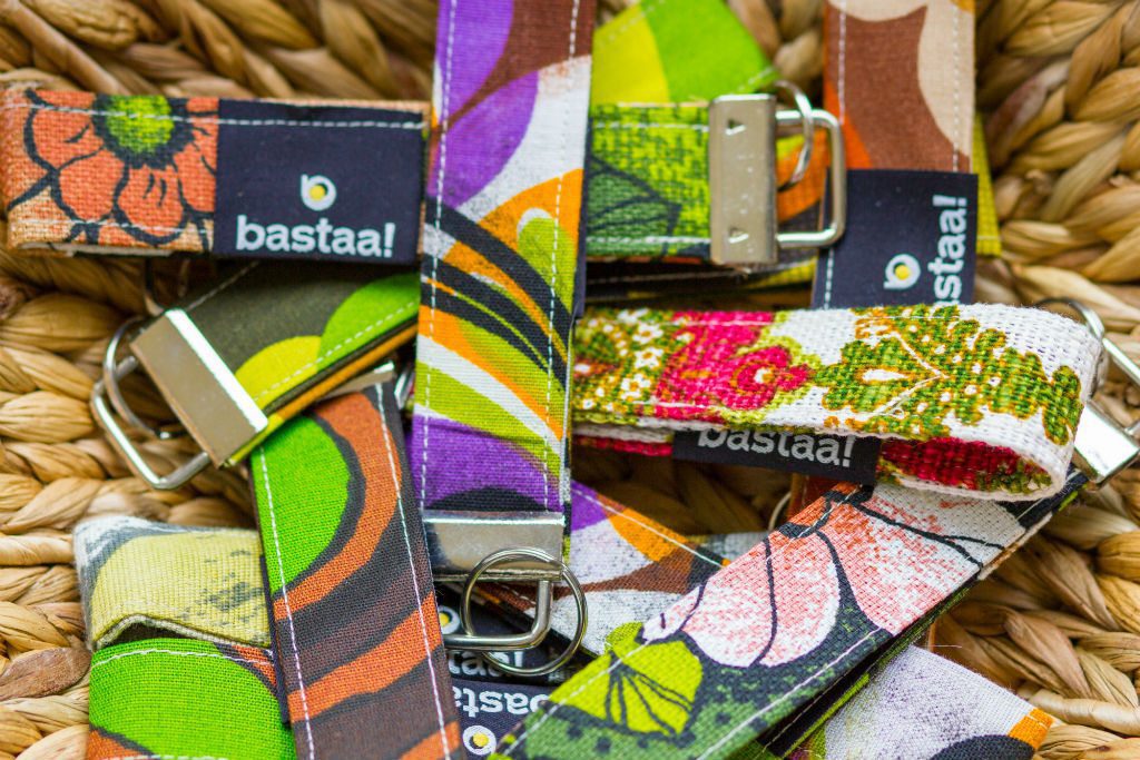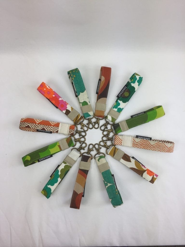 Sleutelhanger handgemaakt van onze vintage stof. Met handige musketonhaak. Je hangt hem om je pols en hebt zo al je sleutels bij de hand.