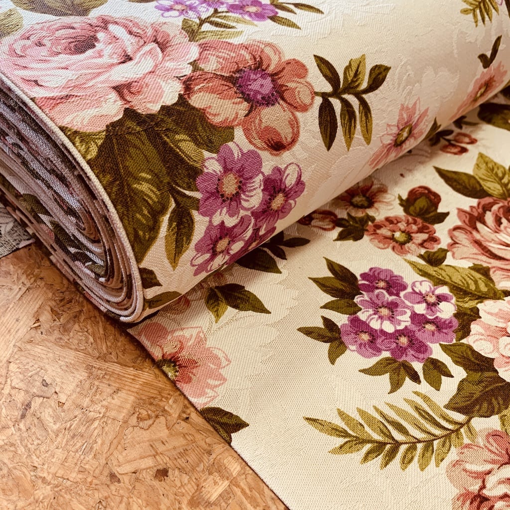 Mooie retro stof met vrolijke bloemenprint in prachtige kleuren op ecru ondergrond. Het lijkt net een schilderijtje. De stof heeft een klein relief en is redelijke stevig. Leuk voor kussens op de bank, gordijnen in de retro caravan of vintage camper. Ben je zelf creatief? Dan heb je vast ook zelf wel een idee wat je hiervan zou kunnen maken.