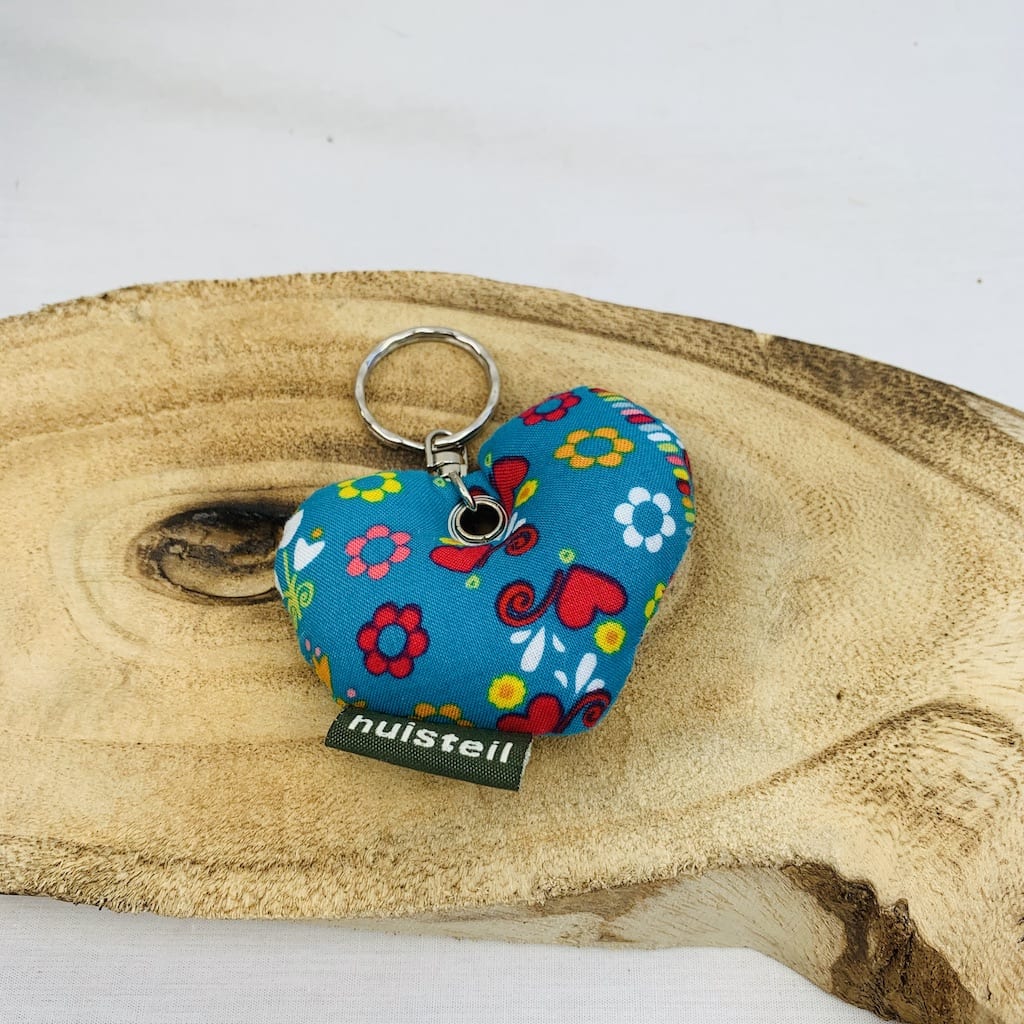 Leuke sleutelhanger, handgemaakt van retro stof. Wie gun jij wel zo’n lief hartje?