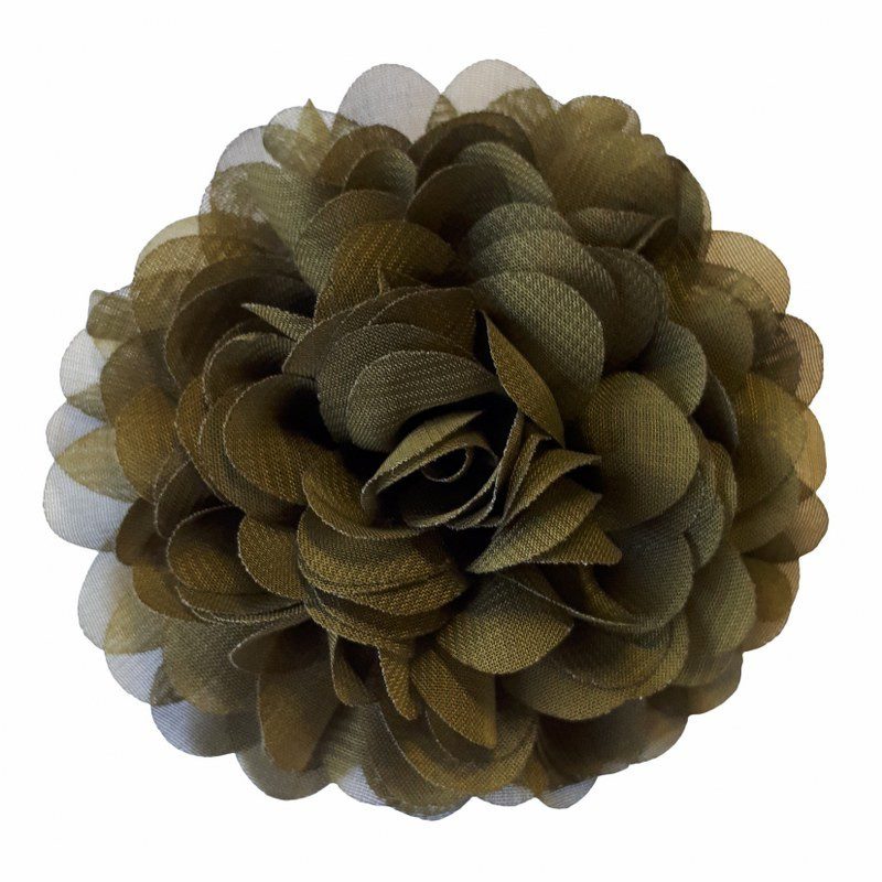 Chiffon corsage bloem in de kleur olijfgroen met clip