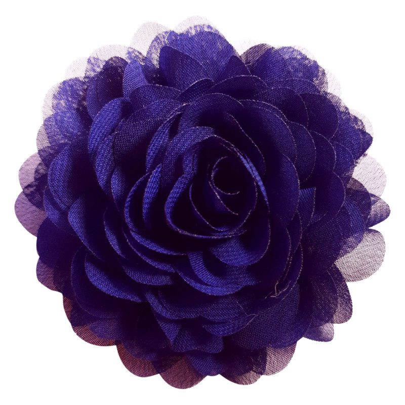 Deze chiffon corsages hebben een platte achterkant waardoor ze mooi aansluiten op je kleding of haren. Ze zijn lekker licht dus blijven goed zitten in je haar. De achterkant is mooi afgewerkt met een viltje in dezelfde kleur en een stevig alligator clipje. Het bloemetje heeft een doorsnede van 9 cm. Het logo-stickertje op de achterkant is van zijde en kun je dus gewoon laten zitten. De kleur is diep paars, dus prachtig te combineren met veel andere kleuren.