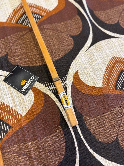 Het is originele gordijnstof van het merk Vriesco uit de zeventiger jaren, dus ook geschikt voor gordijnen. Maar ook leuk voor kussens op de bank, gordijnen in de retro caravan of vintage camper. Of bijvoorbeeld als keukengordijntje. Ben je zelf creatief? Dan heb je vast ook zelf wel een idee wat je hiervan zou kunnen maken. De stofvouw kan zichtbaar zijn maar met strijken wellicht glad te krijgen. Uiteraard kunnen we dat niet 100% garanderen. Ook dat is natuurlijk de charme van vintage stof.