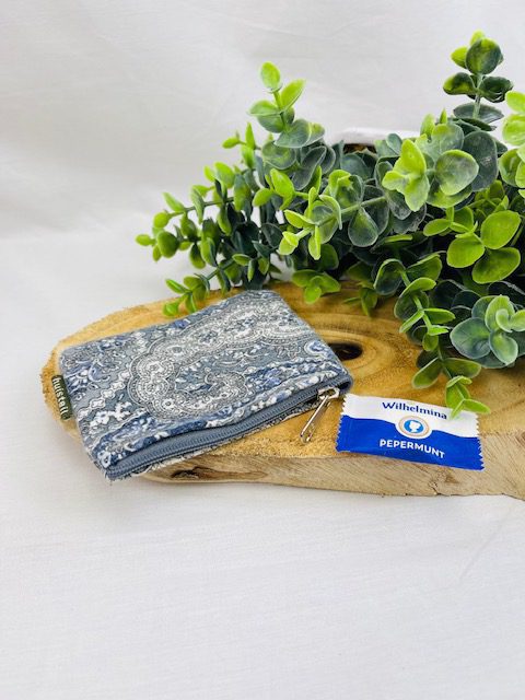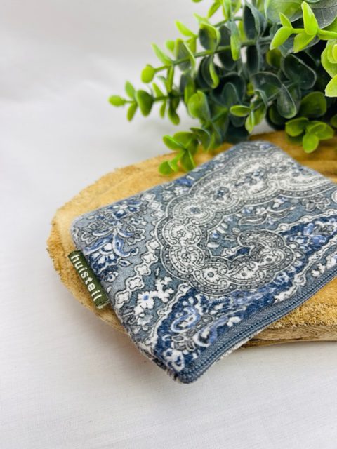 Lief portemonneetje van Huisteil, natuurlijk ook handgemaakt van vintage en retro stof. Dit etuitje heeft aan de bovenkant een rits en is handig voor bijvoorbeeld je pasjes, wat (klein)geld of andere kleine spulletjes zoals je oordopjes.