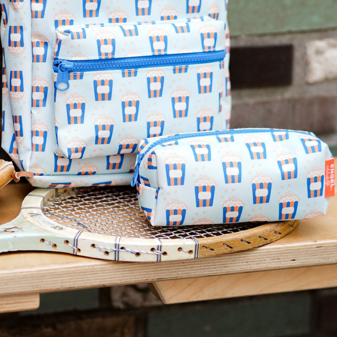 Deze vrolijke etui met popcorn print in het blauw is ruim en handig om pennen of kleine spulletjes in op te bergen. De etui is gemaakt van gerecyclede PET flessen, dus duurzaam en heeft een stevige rits. Leuk voor school, naar je werk of gewoon thuis.