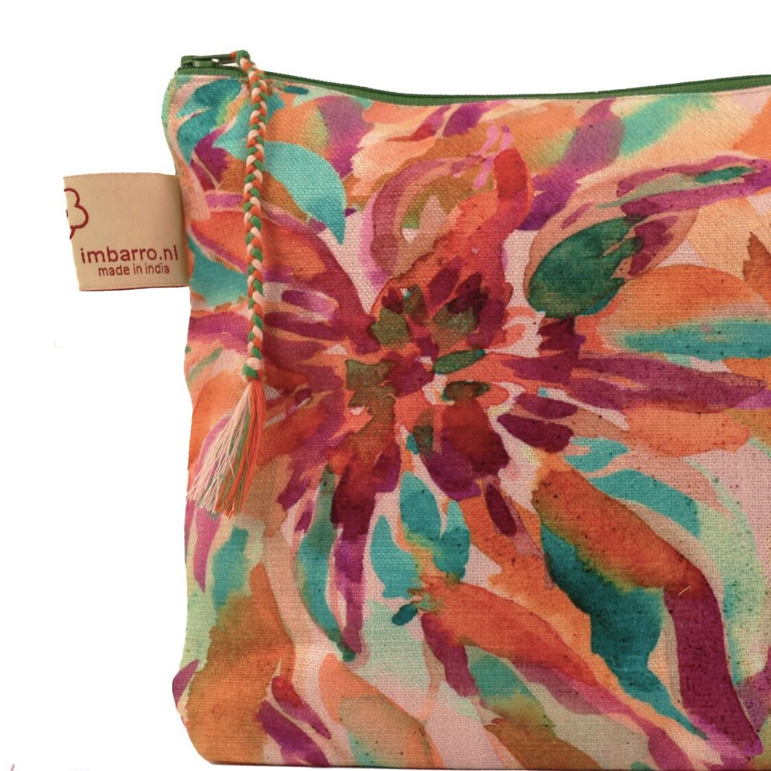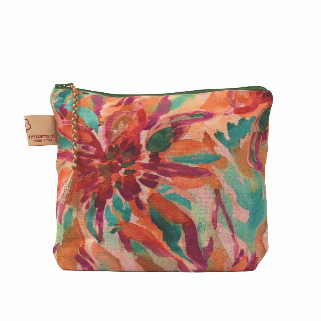 Je kent het wel.. allemaal losse spulletjes die je graag wilt meenemen. Dan is deze kleurrijke pouch echt iets voor jou. Gemaakt van katoen met prachtige print. Handig voor een weekendje weg, mee naar je werk of gewoon thuis. Ideaal om als opbergtasje mee te nemen in een grotere tas. Groot genoeg om je portemonnee, mobiel, oplader en andere spulletjes in mee te nemen. Of gebruik hem als " tas in tas ".