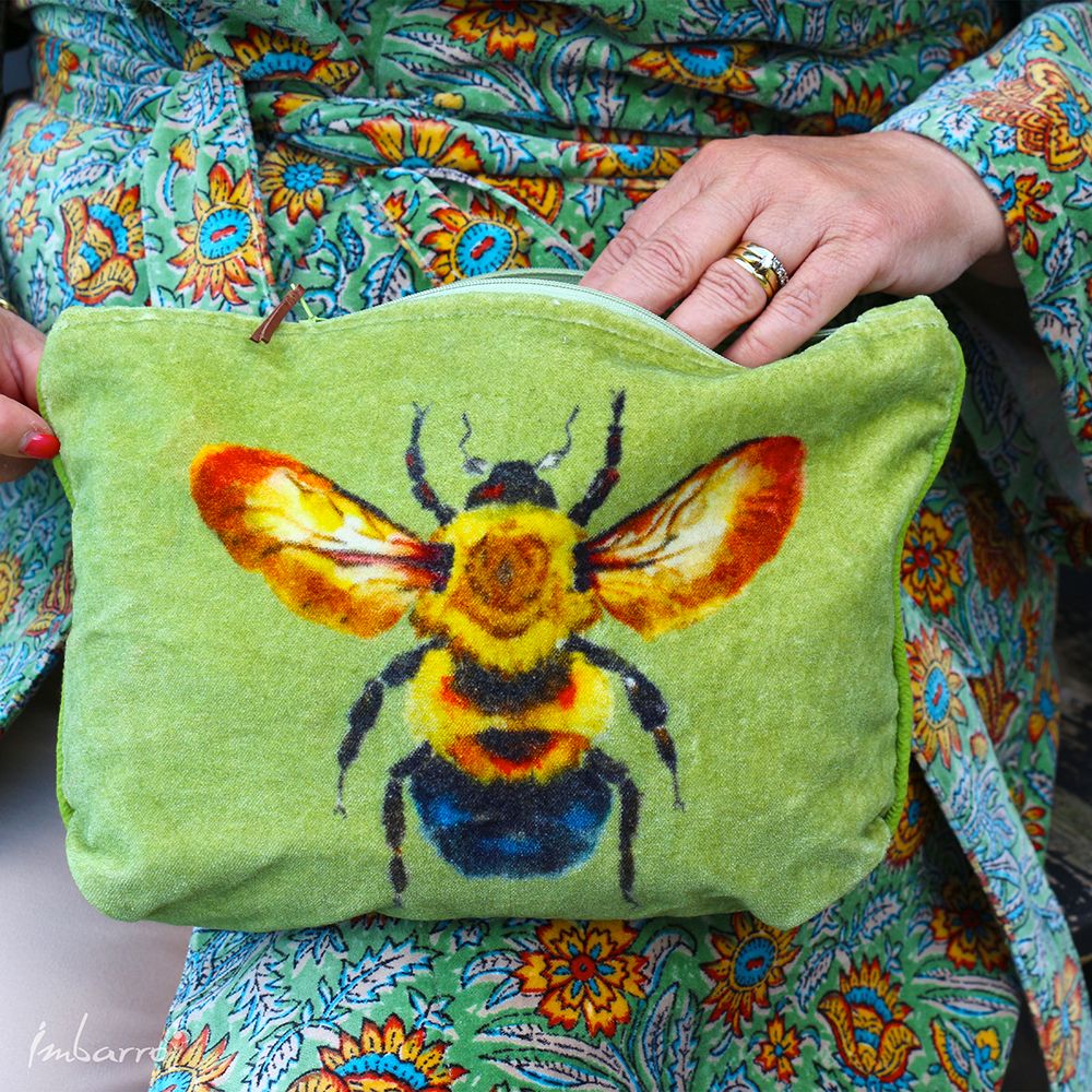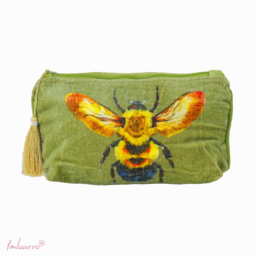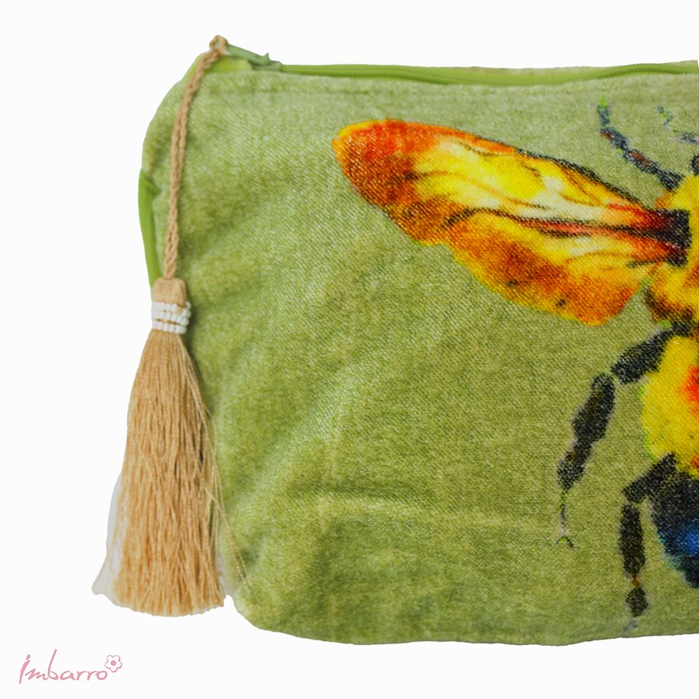 Etui – Pouch Velvet – Bumble Bee – groen – Imbarro