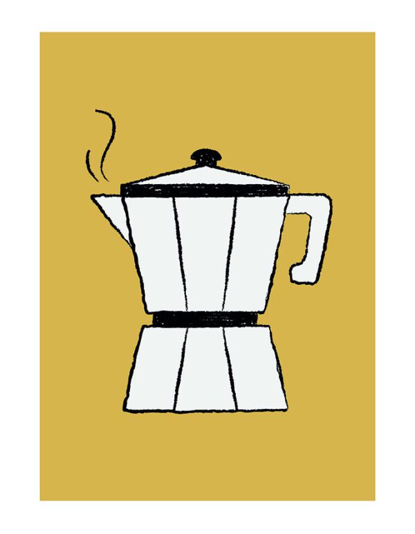 Forex Interieur Poster A4 – Koffiepot geel – 30 x 22 cm