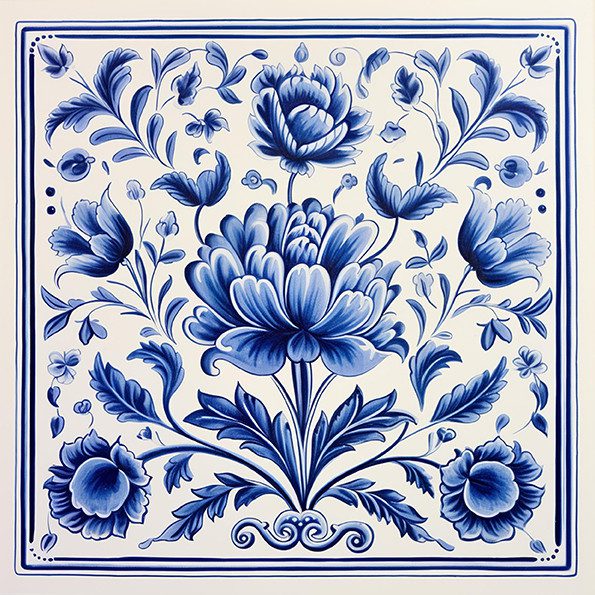 Forex tegeltje – Delfts Blauw bloem – 10 x 10 cm