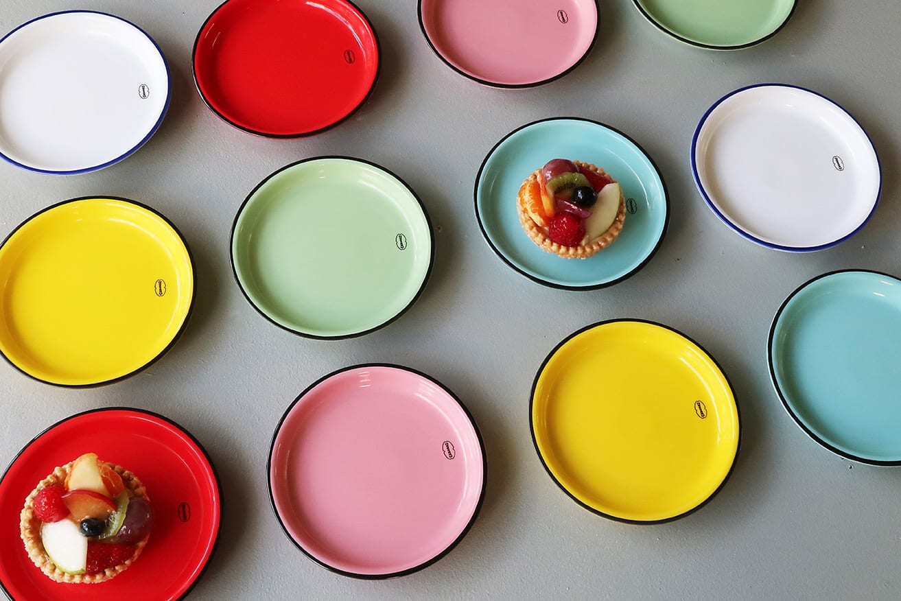 De bordjes zijn makkelijk stapelbaar en verkrijgbaar in diverse vintage kleuren.