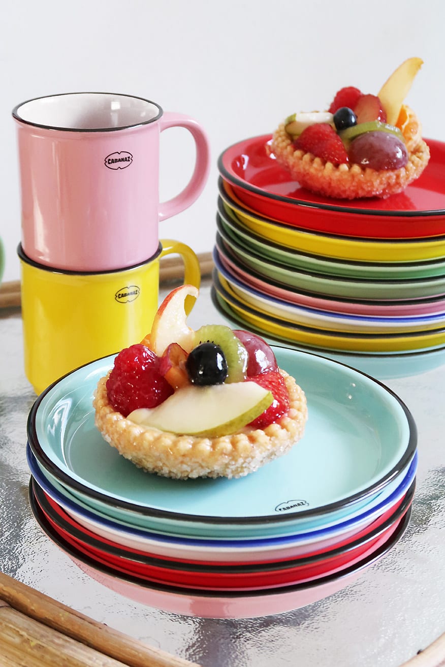 Even een beetje terug in de tijd, nostalgie maar dan mooier. Dit bordje van het merk Cabanaz is van keramiek. Het past bij de mokken, espressokopjes en al het andere serviesgoed uit deze serie. Kleurrijk en het brengt vrolijkheid op tafel. Ook dit bord is gebaseerd op vintage emaille servies. Daar leg jij toch ook graag een lekker taartje of een dessert op.