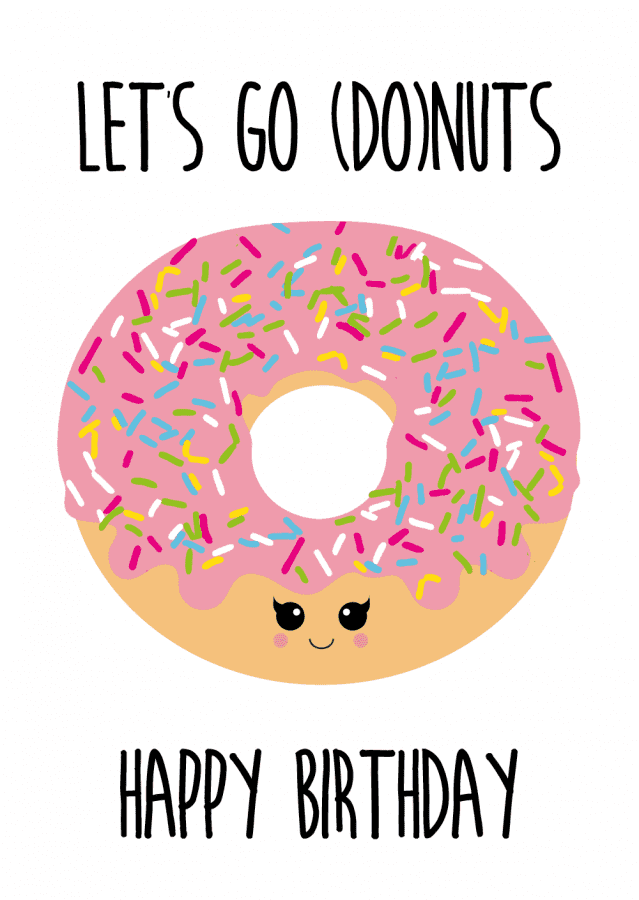 Let's go (do)nuts - Happy Birthday - ansichtkaart A6