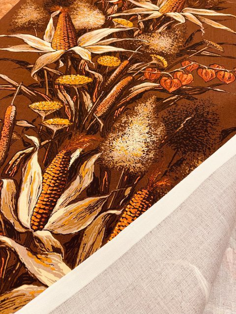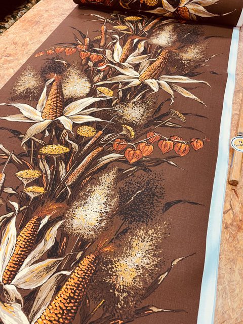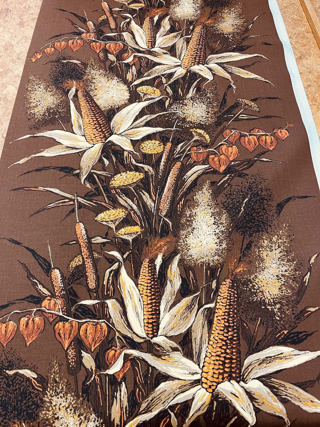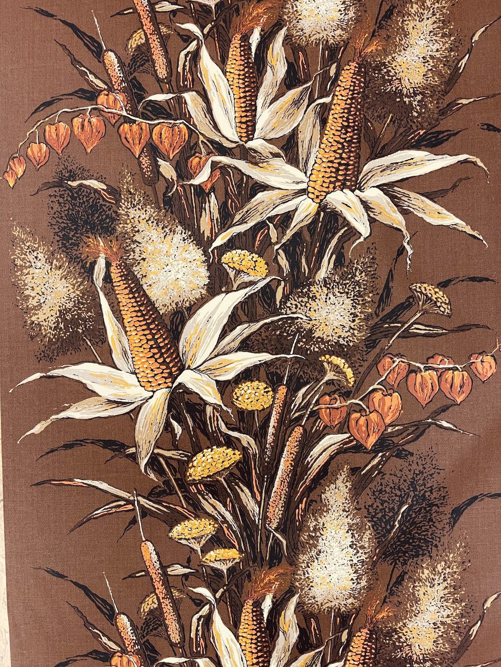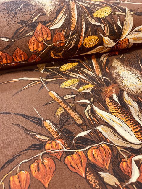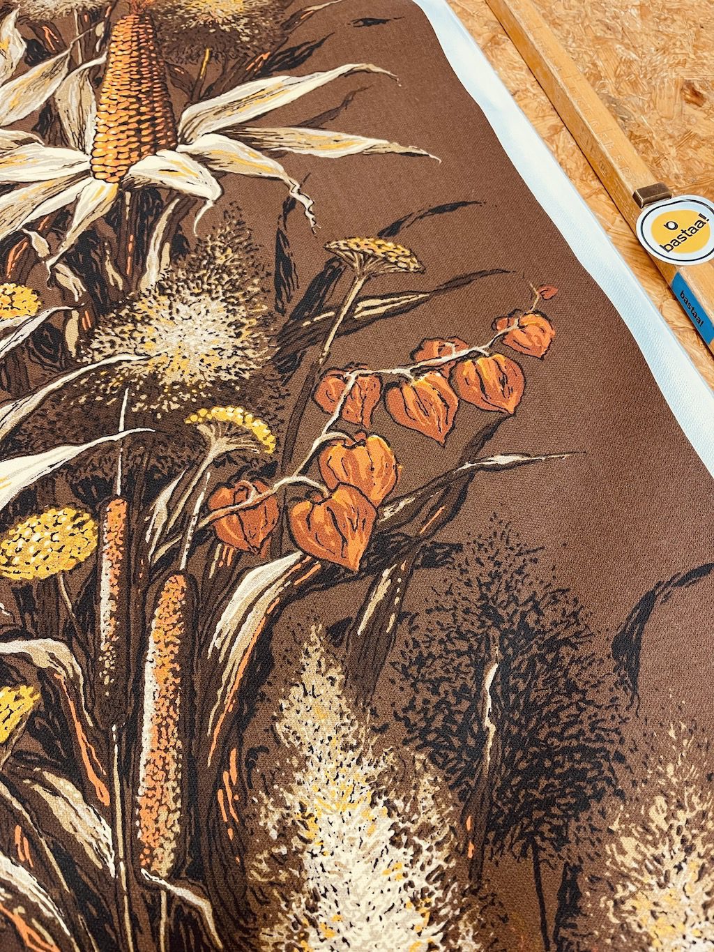 Originele jaren 70 stof met een mooi herfstboeket. De stof is 120cm breed.