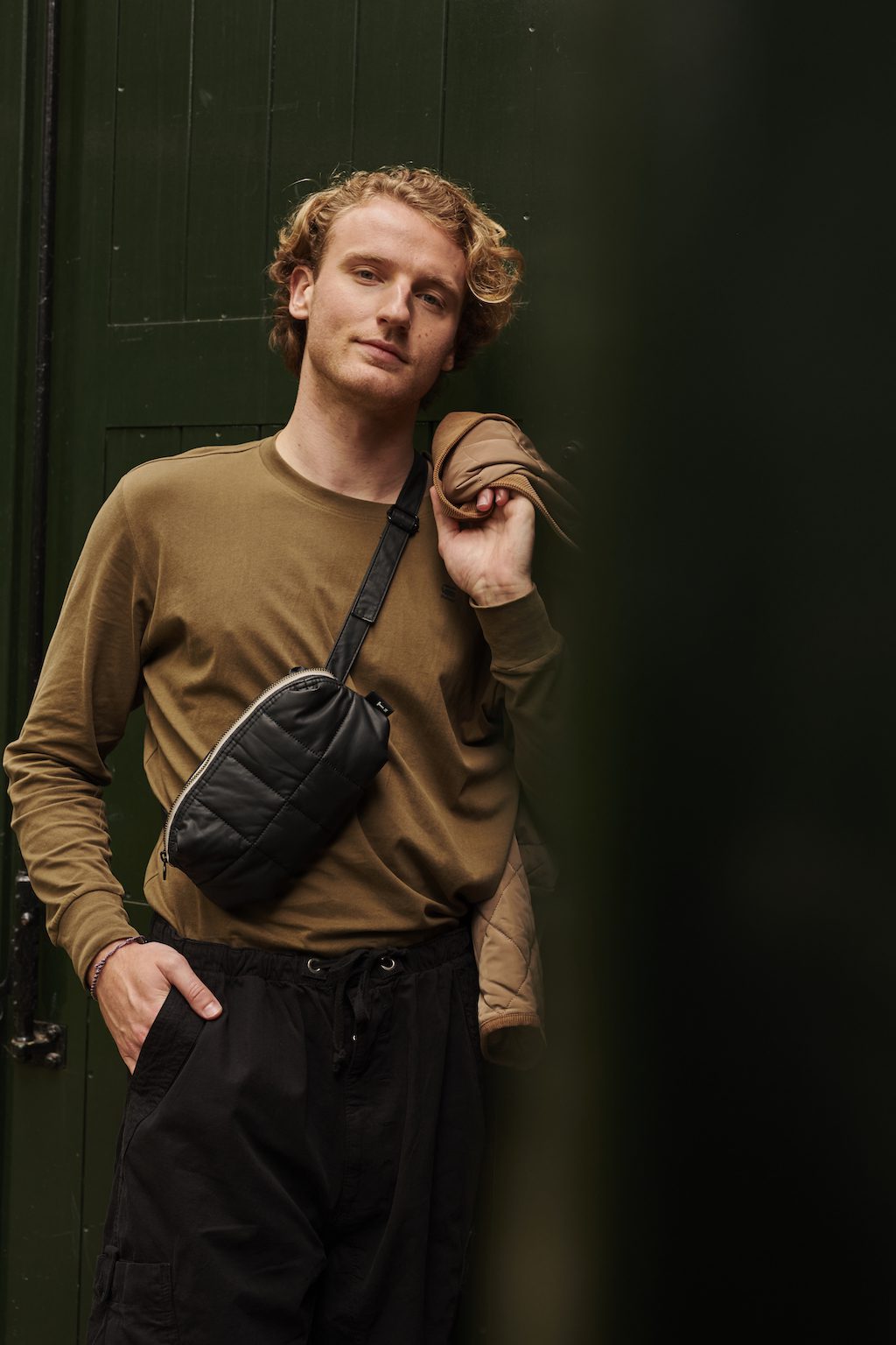 Deze fanny pack sluit veilig met een rits en beschikt over ƩƩn ruim vak. Het tasje is doorgestikt, wat zorgt voor een eigentijdse uitstraling. Draag het comfortabel om je heupen of crossbody over je schouder.