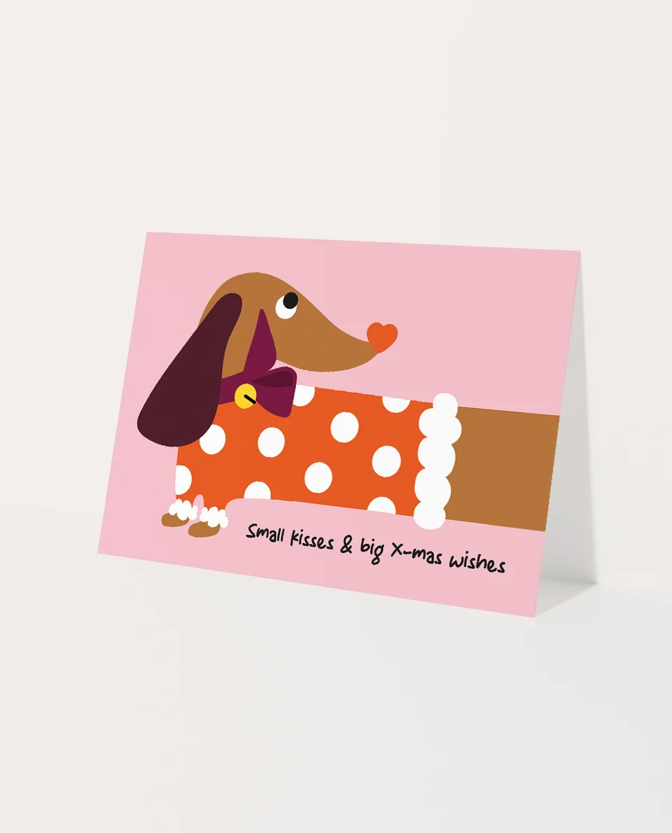 Lang, lief, een tikkie ondeugend en klaar om de show te stelen. Deze grappige Heyday honden kerstkaart met lieve tekkel is gemaakt voor hondenliefhebbers, baasjes of iedereen die smelt bij een viervoeter in kerststijl. En perfect voor wie wel wat small kisses & big wishes kan gebruiken.