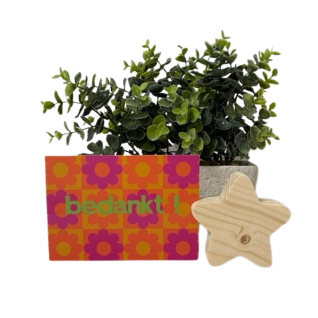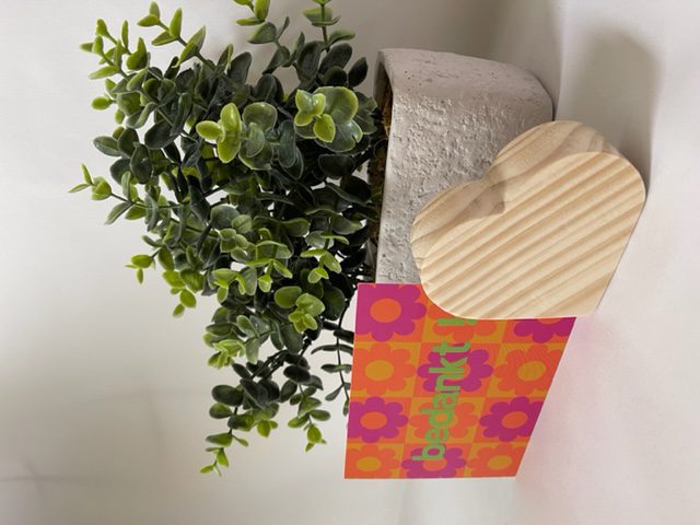 Handige kaartenhouder van blank onbehandeld hout. Zo zet je eenvoudig jouw favoriete kaart als een foto te shinen. Ook leuk om mee te sturen met je kaart, zodat de ontvanger jouw kaart direct een mooi plekje kan geven op de kast, het bureau of op de boekenplank. Natuurlijk kun je deze kaartenhouder ook gebruiken voor je allermooiste fotoās. Zo vallen ze direct op wanneer je dit super leuke kaartenhoudertje gebruikt! Uniek, handig en natuurlijk duurzaam door het gebruik van afvalhout.