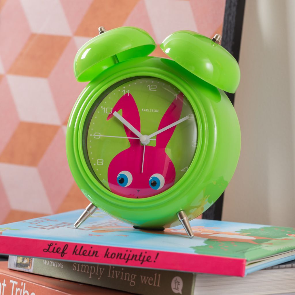 Karlsson Peekaboo Bunny wekker groen – stille design wekker met konijn