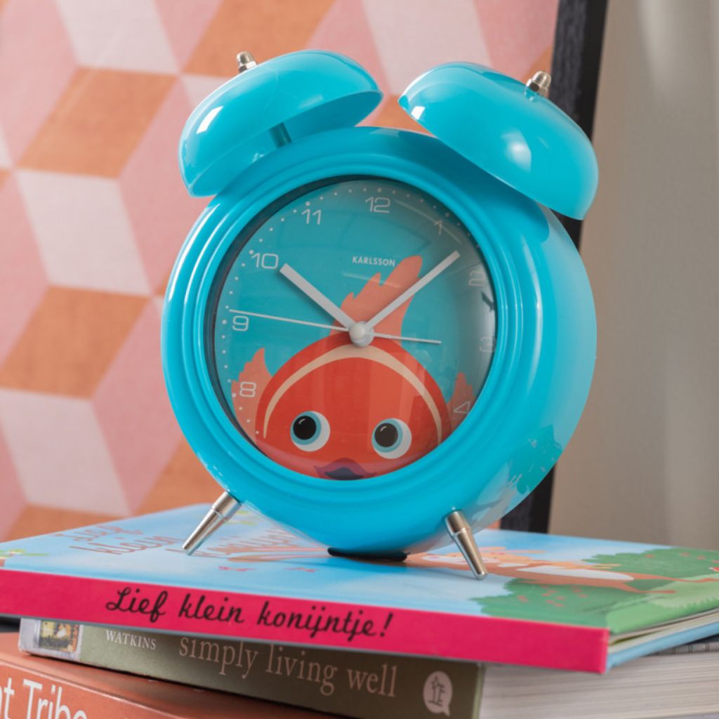 Karlsson Peekaboo Goldfish wekker lichtblauw – stille design wekker met goudvis