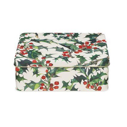 KoektrommelĀ  Kerst met hulst blaadjes. Rechthoekig opbergblik voor de lekkerste koekjes of andere kleine spulletjes. Formaat: 20 x 15 x 8 cm