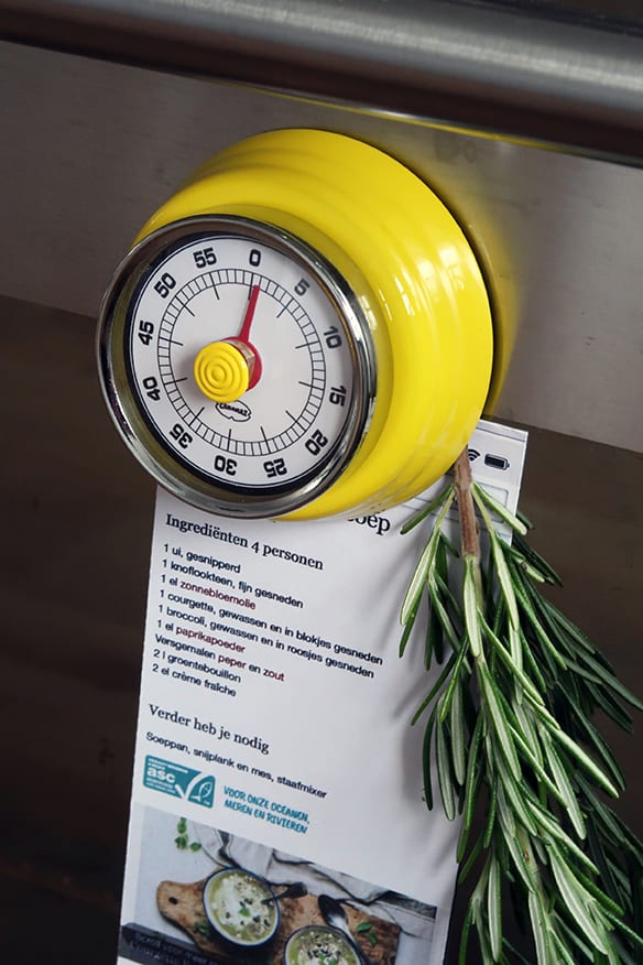 Door de magneet aan de achterkant kun je de kookwekker op de oven of de koelkast hangen. Zo krijgt je keuken die kleurrijke retro twist en is dit een aanwinst in de keuken. Wind de wekker eerst helemaal op en draai hem dan terug op de gewenste tijd.