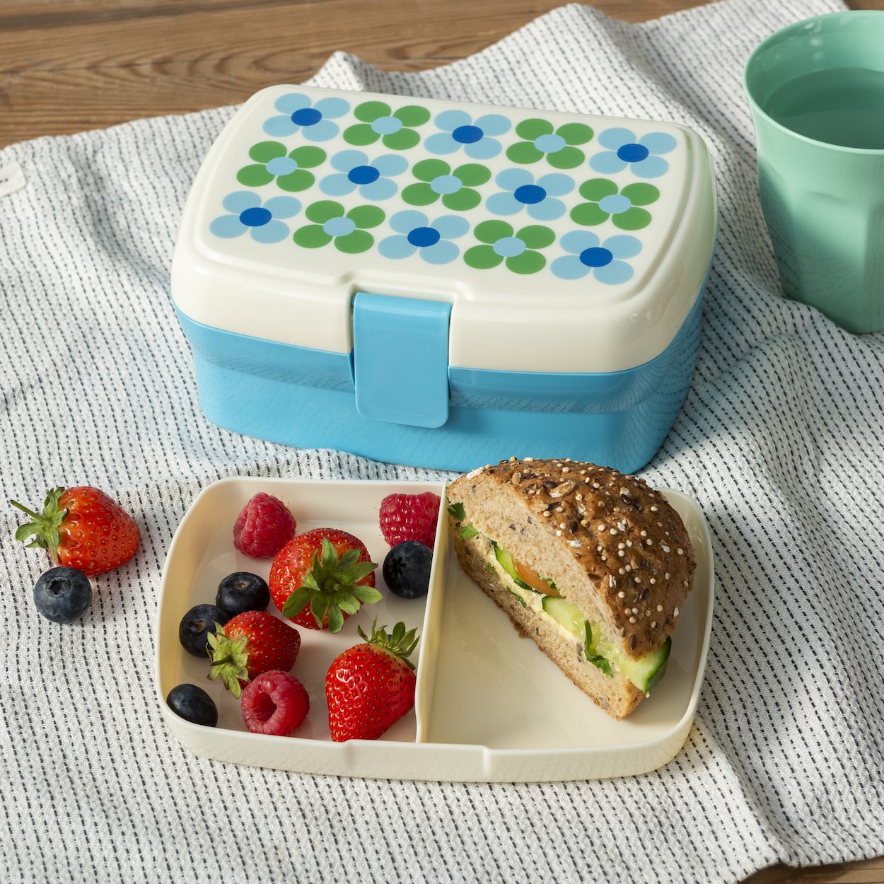Lunchbox met vakjes – Daisy – Blauw Groen – bentobox – Rex London