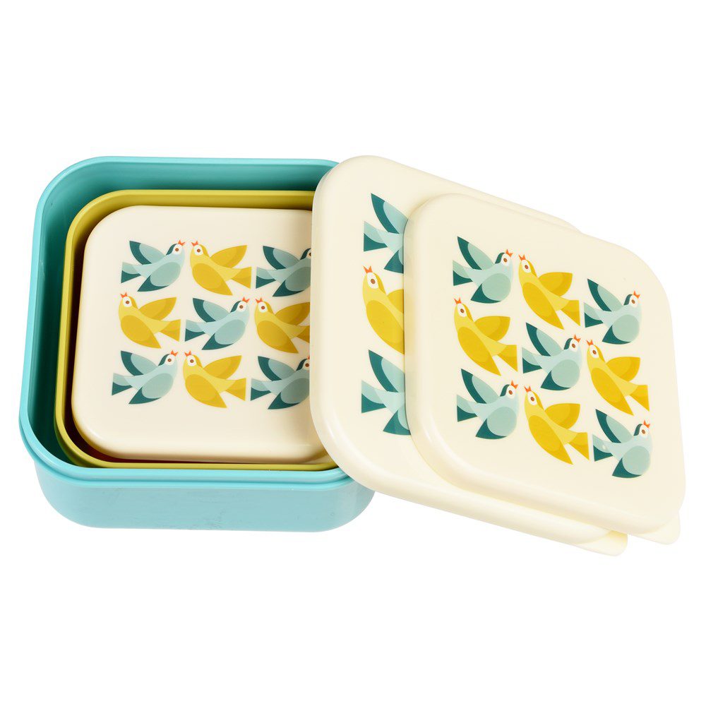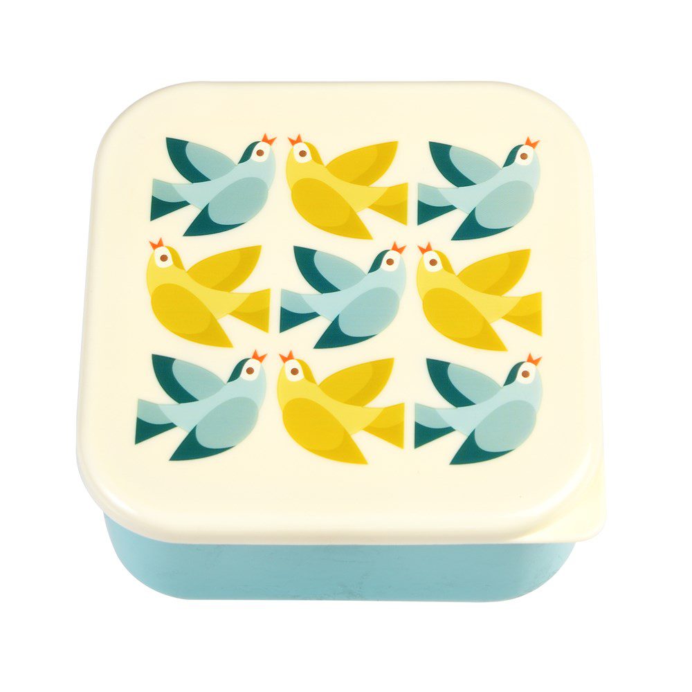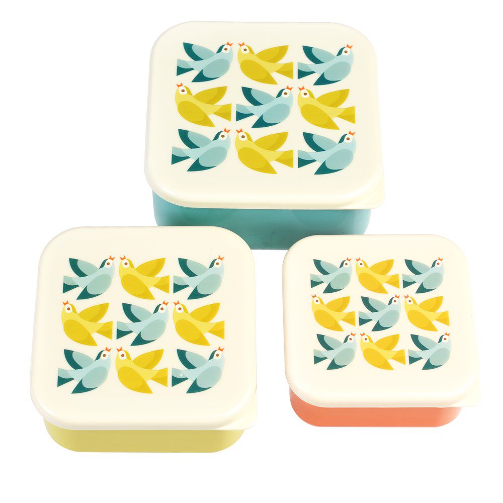 Verwen jezelf of je kind eens met deze leuke set van 3 snack doosjes met leuke Love Birds print. Vrolijke kleuren. Een praktisch formaat, past makkelijk in je tas of rugzak. Zo kun je eenvoudig je eigen lunch mee te nemen naar school, je werk, dagje weg etc. Je eigen, thuis heerlijk gesmeerde broodje, appel etc., het past er allemaal prima in.