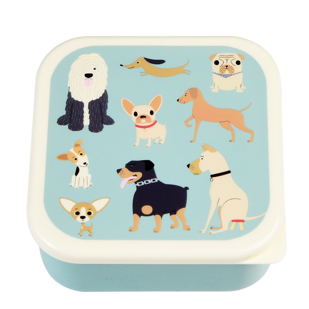 Verwen je kind eens met deze leuke set van 3 snack doosjes met leuke print. Elk doosje heeft een andere afbeelding met natuurlijk de liefste honden. Een praktisch formaat, past makkelijk in je tas of rugzak. Zo kun je eenvoudig je eigen lunch mee te nemen naar school, je werk, dagje weg etc. Je eigen, thuis heerlijk gesmeerde broodje, appel etc., het past er allemaal prima in.