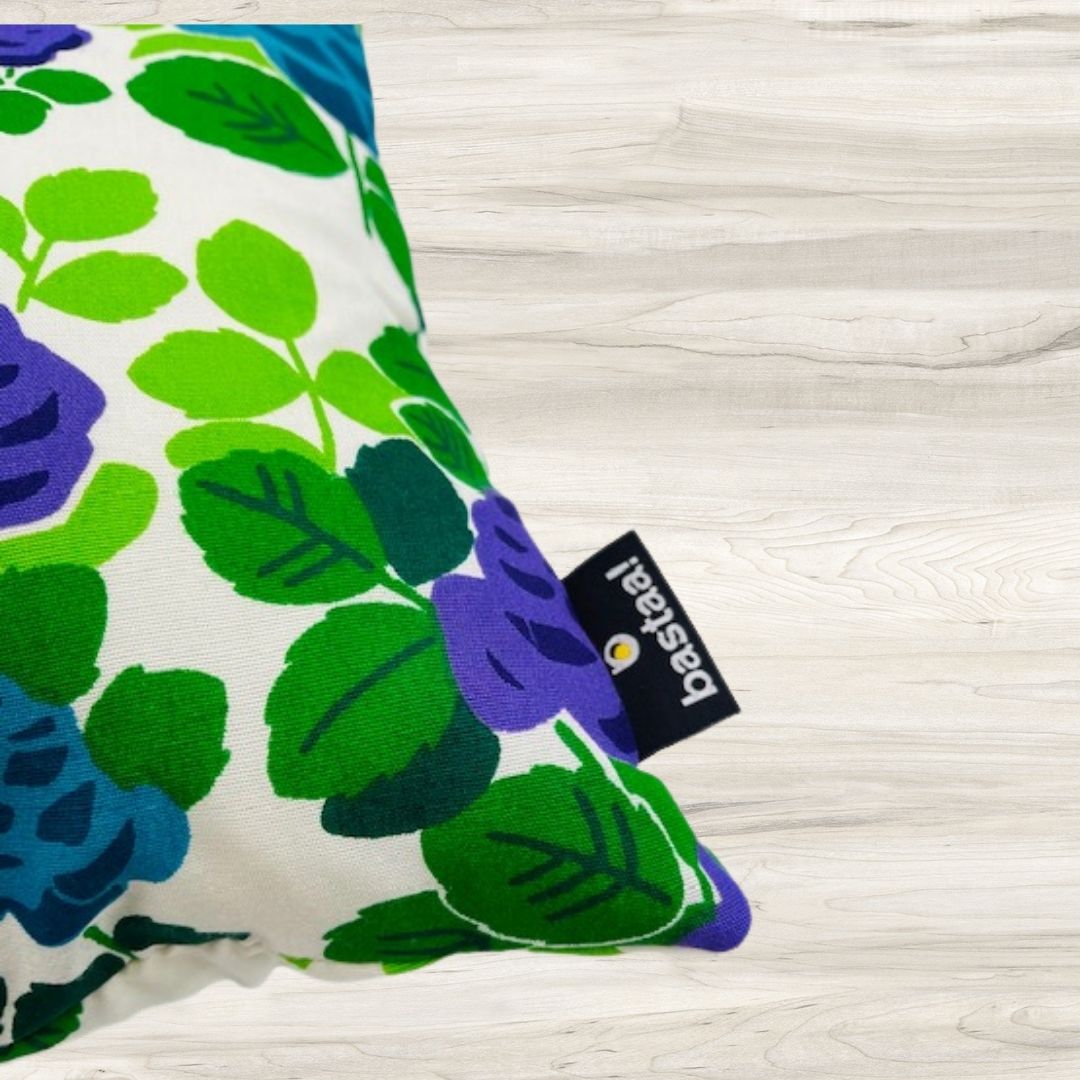 Elk kussen is uniek en natuurlijk handgemaakt. Het patroon op deze stof bestaat uit bloemen en bladeren. Doordat dit patroon steeds verspringt kan het kussen altijd iets afwijken van de kussens op de foto. Daardoor is elke kussens anders en bijzonder. Bekijk vooral de foto's met de meerdere kussens, hier zie je hoe elk kussen weer anders is. Voel je weer Back to the Seventies!
