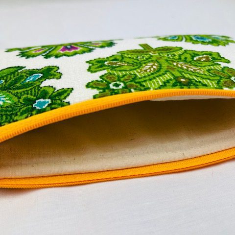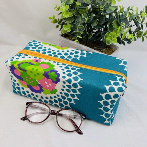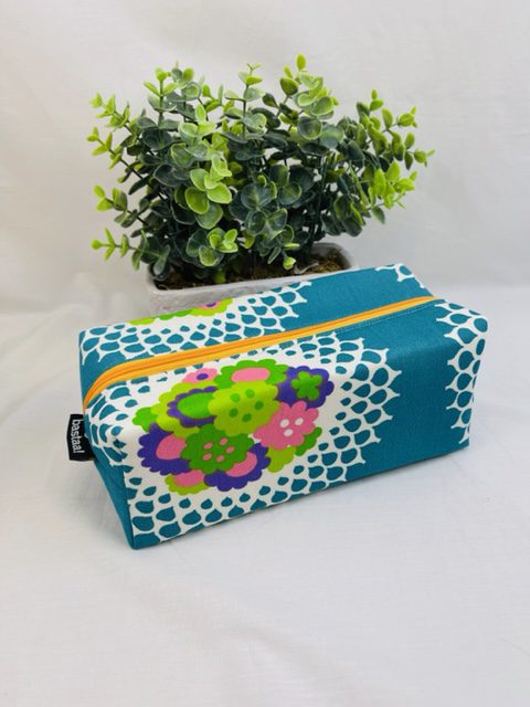 Deze ruime, rechthoekige etui is handgemaakt van onze vintage stof. Alles fijn bij elkaar in deze handige en gewatteerde toilettas of pouch. Voor al je kostbare spullen of een verzameling van persoonlijke accessoires. Door de tussenlaag van zacht foam is beschermd dit jouw belangrijke producten tegen stoten en vallen. Aan de zijkant een handig handvat van dezelfde stof.