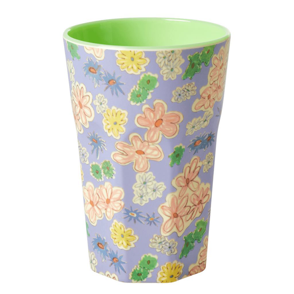 Alweer zo mooie melamine beker large, nu met zomerse print in heerlijke kleuren. Deze hoge beker van melamine is aan de binnenkant zacht groen. Fijn voor een glas water, sapjes, smoothies of latte Macchiato. Ook leuk om deze beker als bloemenvaasje te gebruiken.