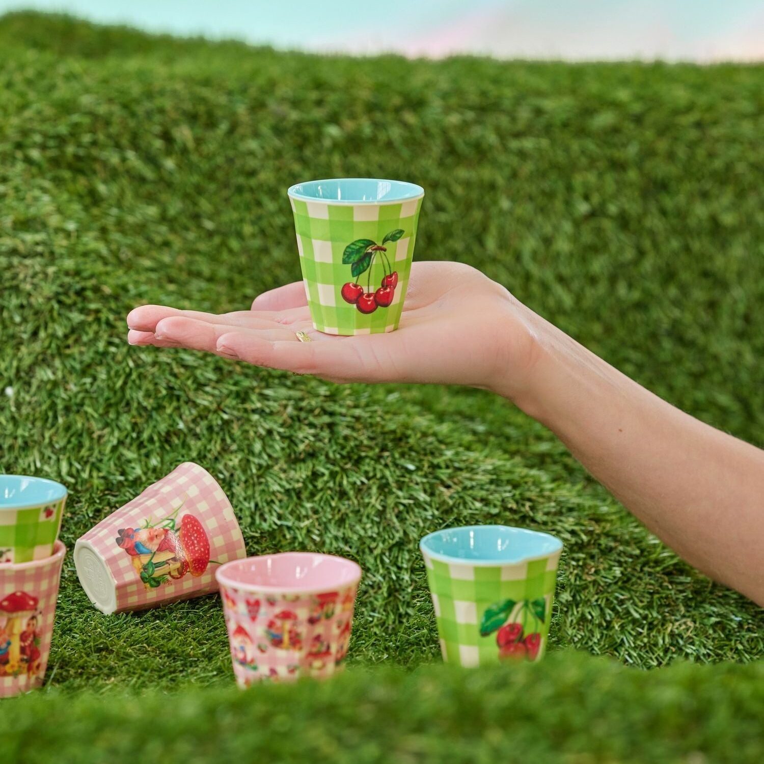 Combineer met deze "mini" bekers met andere vrolijke prints. Deze mooie retro bekers zijn ideaal voor groot en klein. Voor thuis, op de camping of tijdens je picknick. Natuurlijk kunnen deze bekers ook in de vaatwasser, hoe fijn is dat? Deze melamine cups zijn zo leuk en handig, dat je ze elke dag wilt gebruiken .Let op: het product is niet geschikt voor de magnetron.