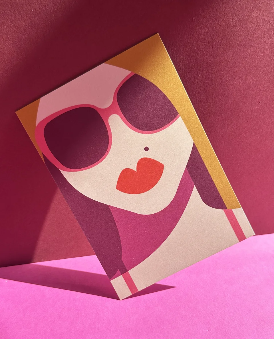 Mon Chéri is een kaart vol Parijse stijl. Rode lippen, oversized zonnebril en een blik alsof ze zo uit Emily in Paris is gestapt. Deze illustratie vangt de sfeer van een echte Parisienne: altijd classy. Voor fashion lovers of vriendinnen met smaak. De kaart is blanco, dus jij bepaalt of je een ‘oh la la’ stuurt of ‘merci’.