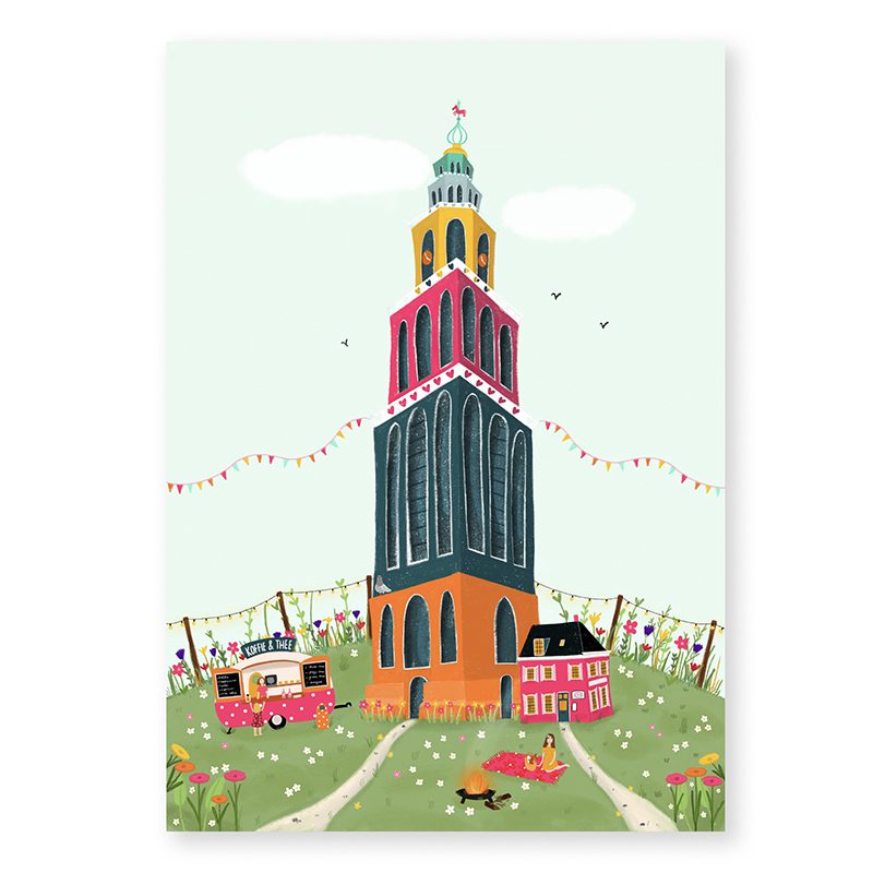Het middelpunt van Groningen is de Olle Grieze. De Martinitoren in het hart van de stad op de Grote markt. Met deze vrolijke ansichtkaart maak je er een feestje van. Deze kaartjes, getekend door Esther van Studio Pics & Zo zijn voor groot Ʃn klein een feest om te ontvangen.
