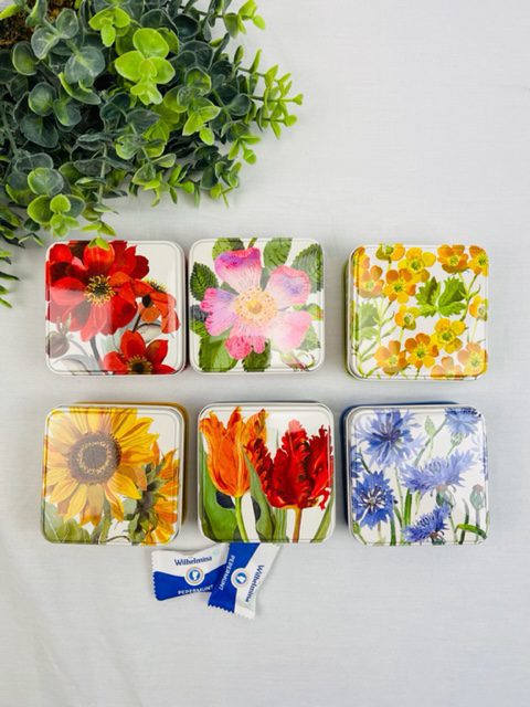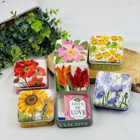 Deze leuke vierkante blikjes zijn gewoon leuk, voor de fun en de echte bloemen liefhebber. In 6 verschillende prints dus jij mag zelf kiezen. Ook leuk om als cadeau te geven met bijvoorbeeld wat geld of iets lekkers.