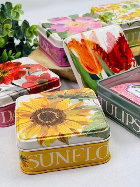 Bewaarblikje, opbergdoosje, opbergblikje. Deze vrolijke doosjes met kleurrijke bloemen zijn handig en leuk om van alles in te bewaren of op te bergen. Bijvoorbeeld wat snoepjes, pleisters of theezakjes. Mooie prints van Emma Bridgewater.