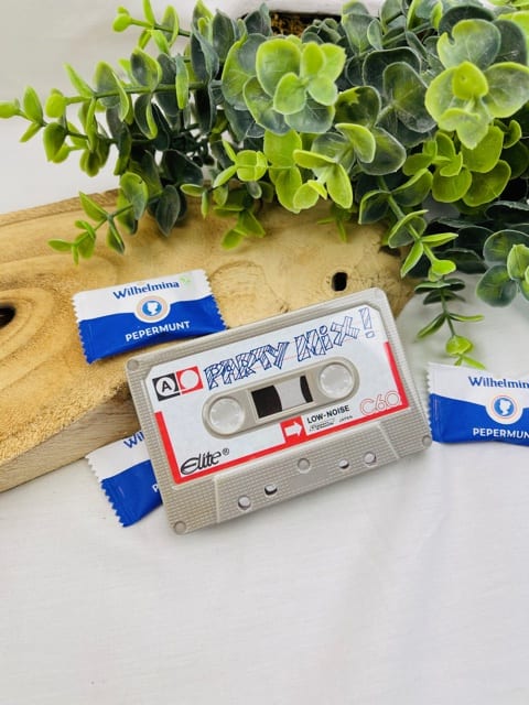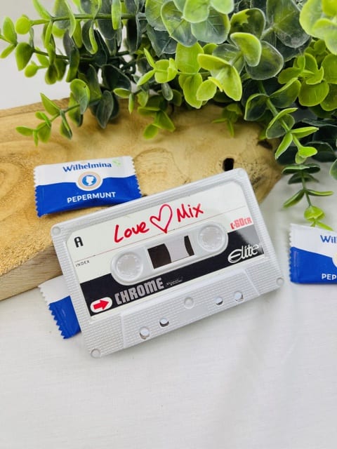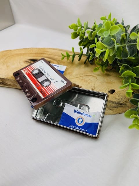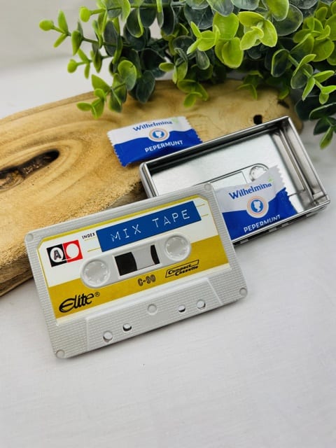 Deze leuke blikjes in de vorm van de retro cassette bandjes zijn gewoon leuk, voor de fun en de echte retro liefhebber. Met verschillende prints en tekst, dus jij mag zelf kiezen. Ook de achterkant is bedrukt, net als de voorzijde. Daar heb je ruimte om eventueel je eigen boodschap op te zetten met een watervaste stift.