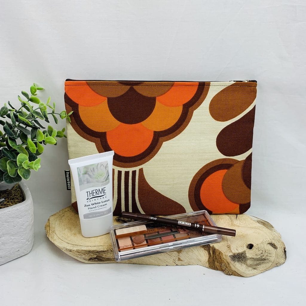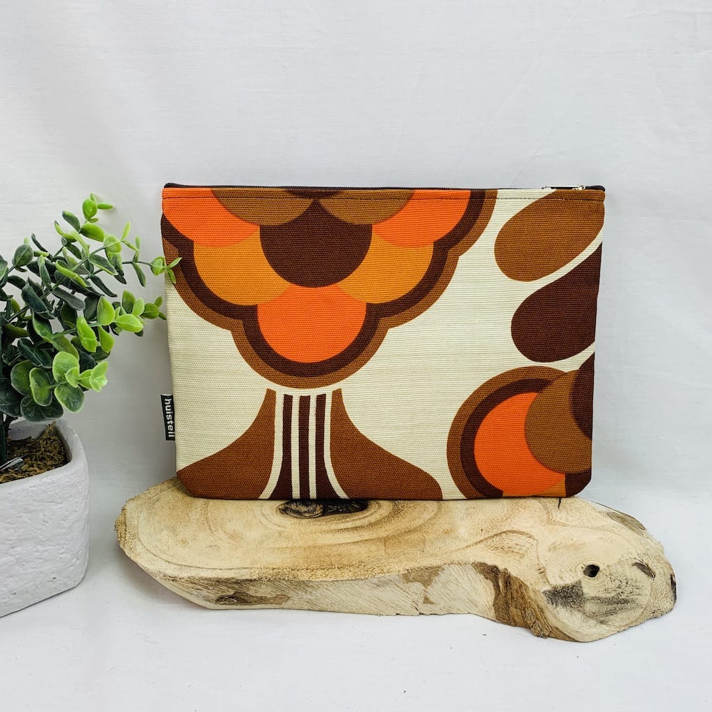 Deze ruime etui is ideaal voor in je tas of thuis. Zo heb je toch alles fijn bij elkaar. In deze extra large etui past zelf jouw tablet of iPad air 2 (maximaal formaat 240 x 170 x 6 mm)!.Deze leuke tasjes van Huisteil zijn handgemaakt en natuurlijk van die mooie vintage stoffen. Alle etuis zijn voorzien van een rits en verstevigd. Elke etui is uniek. Het kan dus zijn dat die ene bloem of streep net even anders is dan het exemplaar op de foto. Maar natuurlijk zijn ze allemaal even mooi en praktisch.