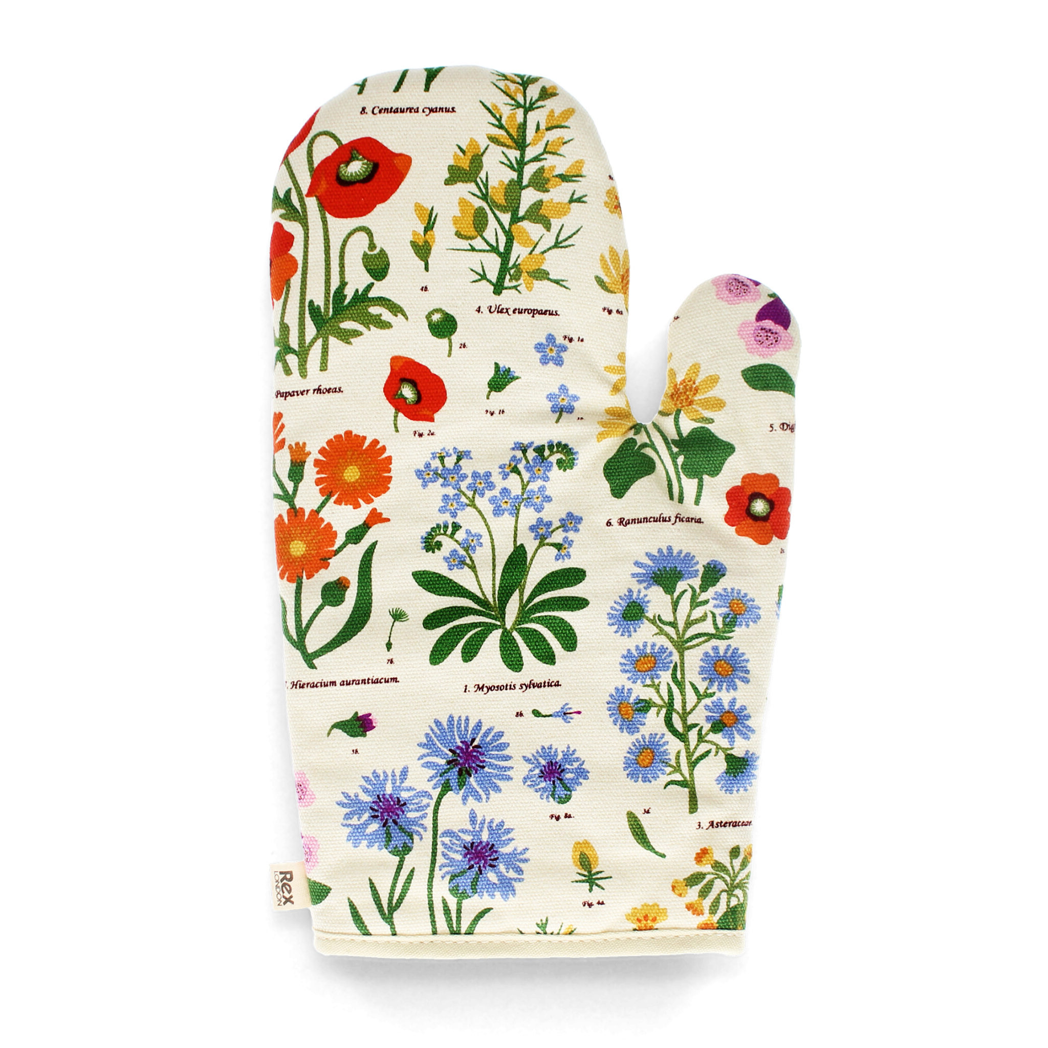 Deze te gekke ovenhandschoen is nu in de vrolijke Wild Flower print. Kleurrijk, heerlijk royaal qua maat, degelijke kwaliteit, robuuste afwerking, kortom kwaliteit die je van Rex London kent. Zo hoef jij je vingers niet meer te branden. Gemaakt van 100% katoen.