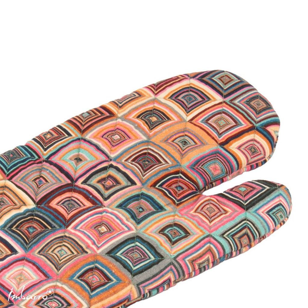 Met deze kleurrijke ovenwanten met retro blokken print voeg je niet alleen veiligheid, maar ook flair toe aan je keuken. De royale maat, stevige afwerking en het zachte, gewatteerde katoen zorgen voor comfort en bescherming. Zoals je gewend bent van Imbarro keukentextiel: kleurrijk, praktisch Ʃn stijlvol.