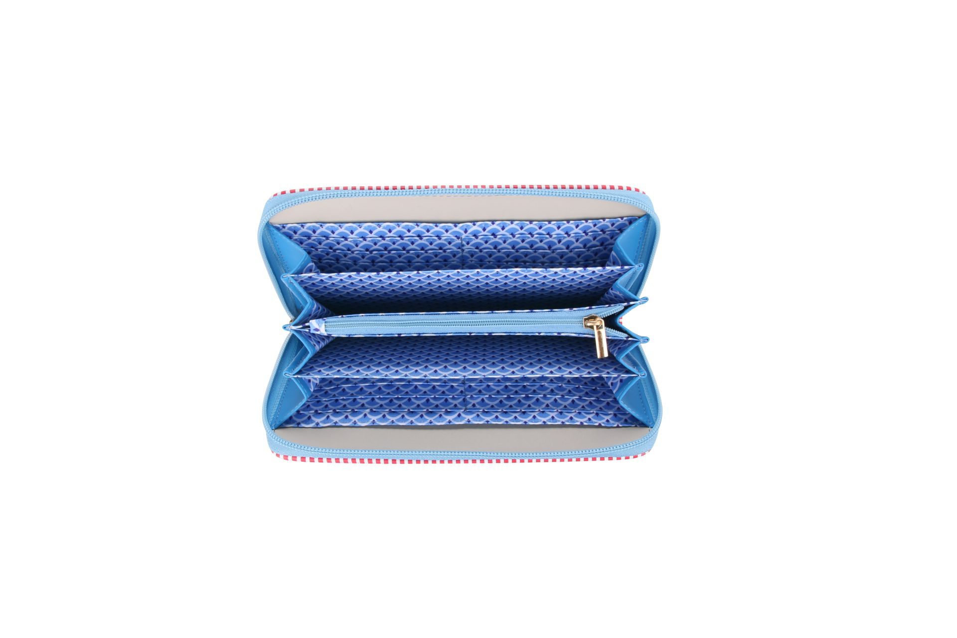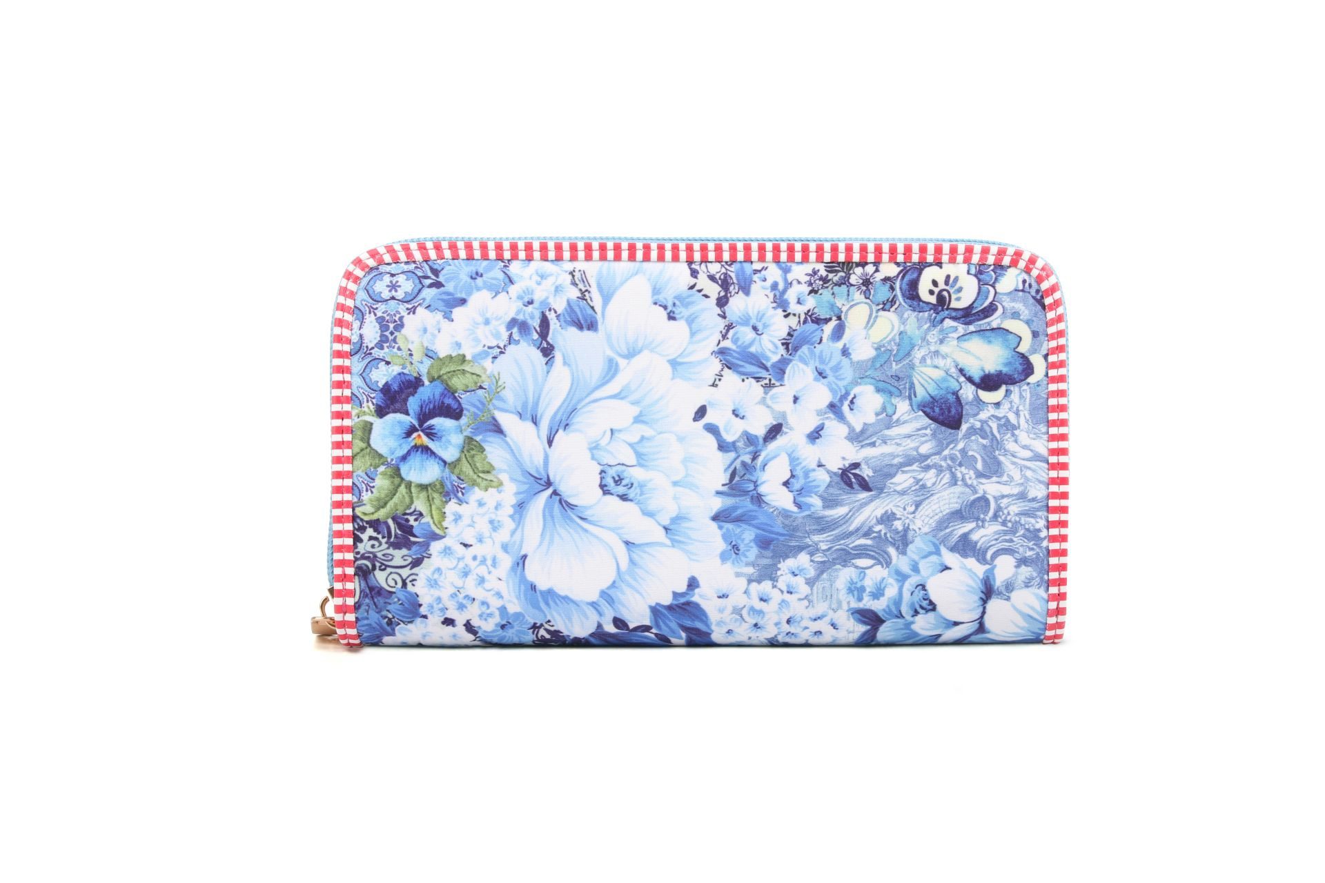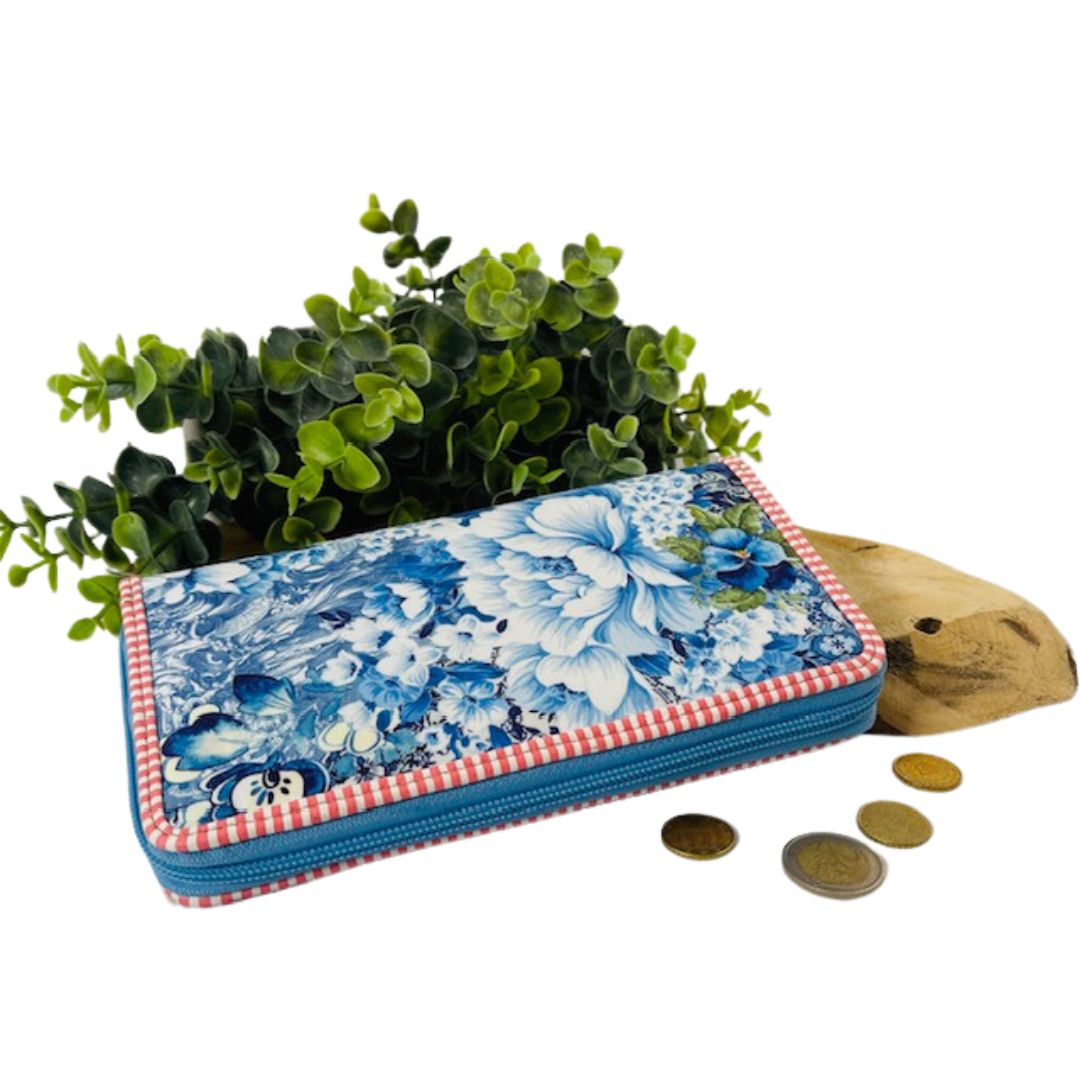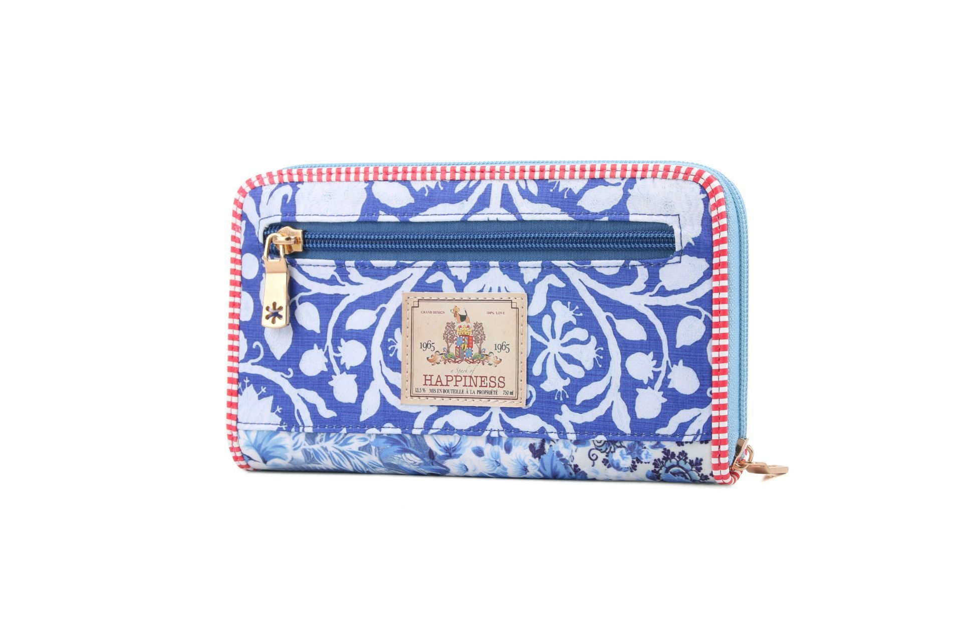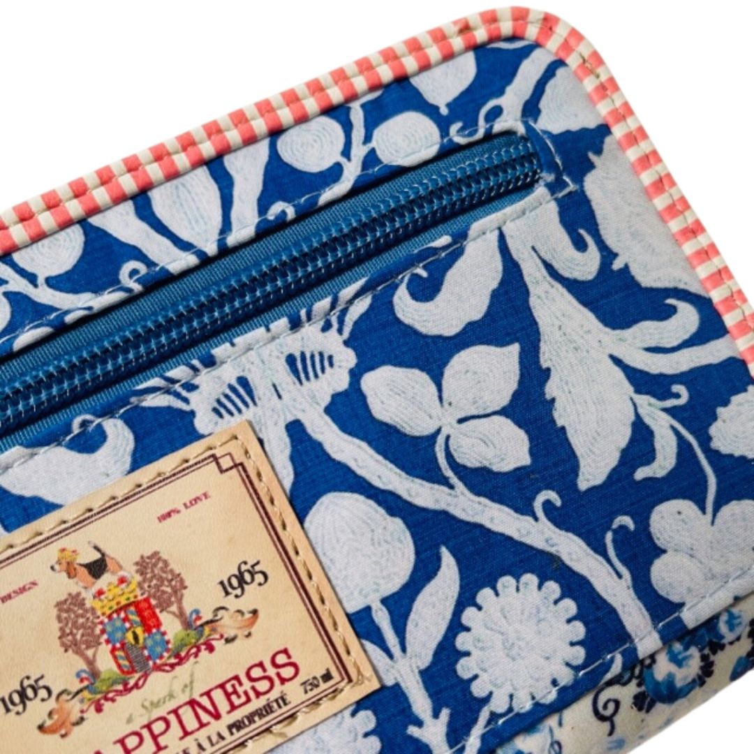 Met deze ruime portemonnee heb jij echt iets bijzonders. Gemaakt van polyester met mooie bloemen in de blauwe kleur.Ā  Afgezet met een bandje in rood wit en je sluit deze met een rits. De voorkant van de portemonnee heeft een mooi bloemen patroon. De andere zijde heeft een extra vakje met rits, het mooie labelĀ  "a Spark of Happiness". De ritsen van deze hippe damesportemonnee zijn lichtblauw. Let ook eens op de mooie zippers met bloemetje, weer zo'n mooi accent. De binnenzijde is van stof polyester met een echte retro print.
