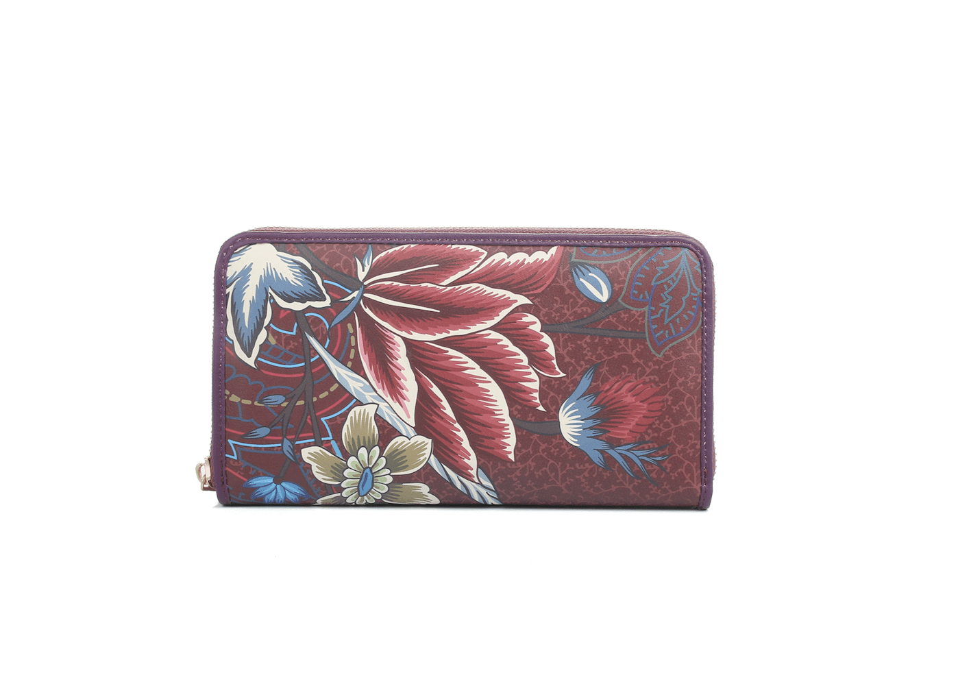 Retro damesportemonnee - Bloemenprint bordeaux rood