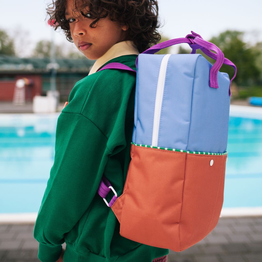 Rugtas Large – Blauw Oranje Colourblocking – Better together | Sticky Lemon