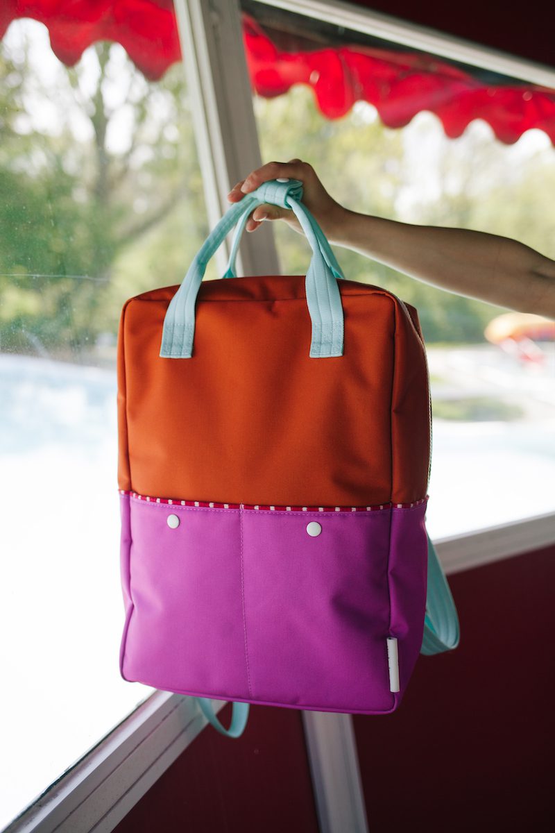 Rugtas Large – Oranje Roze Colourblocking – Better together | Sticky Lemon