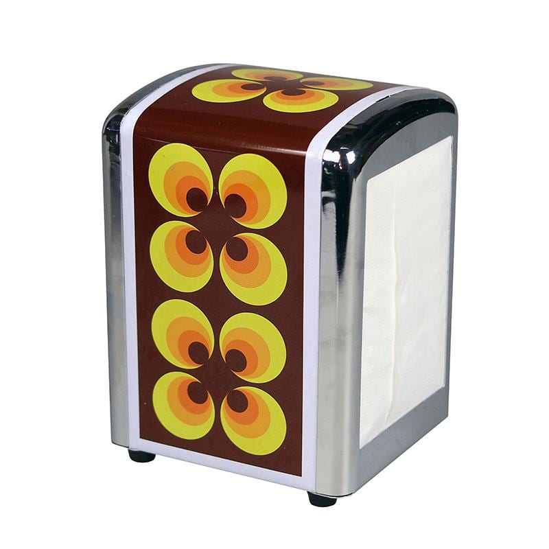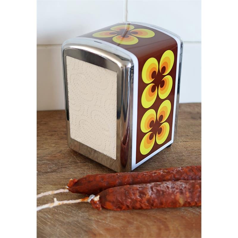 Vieze vingers? Deze originele retro Cabanaz servettenhouder is altijd binnen handbereik. Met deze vrolijke retro print neemt de serie Ramona van Cabanaz jou mee terug naar de Seventies. Geef eenvoudig je woonkamer of keuken met deze retro accessoires dit vleugje nostalgie en breng zo de jaren '70 terug in je interieur.