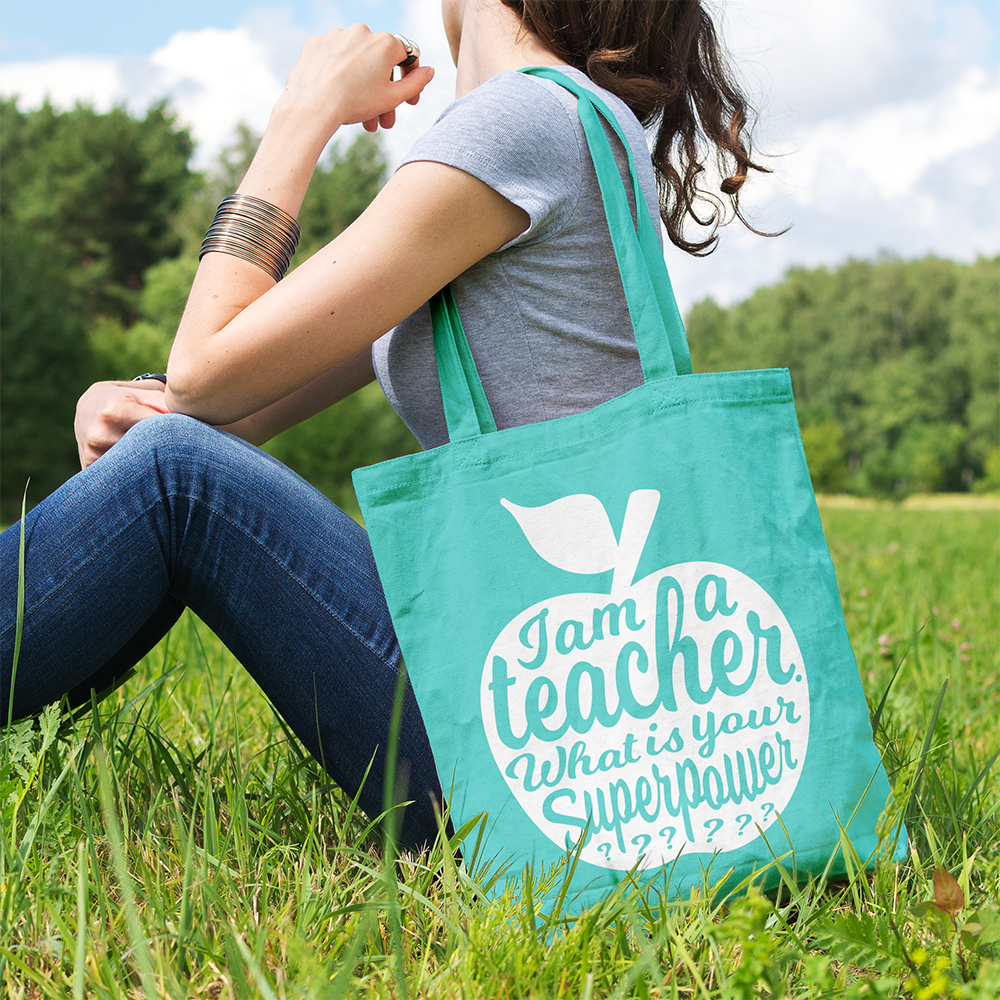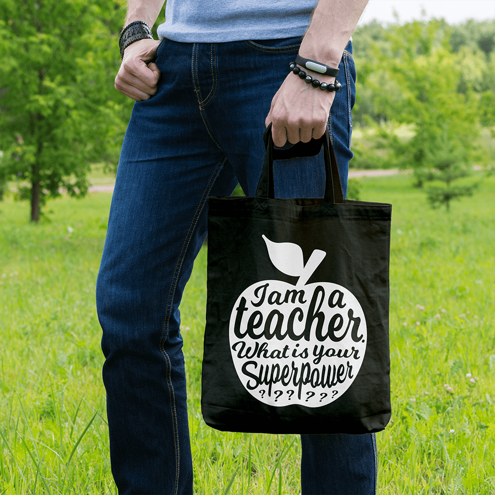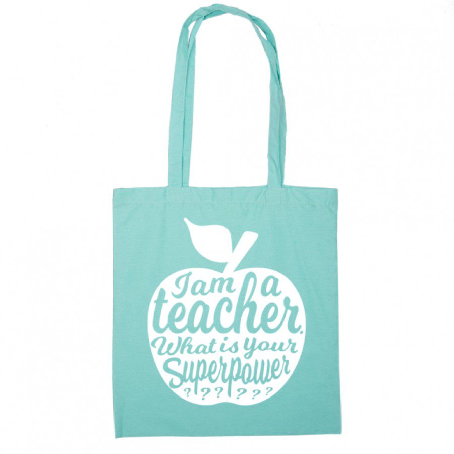 Leuk voor je zelf of om cadeau te geven. Het gebruikte materiaal is 140 gr/m2 katoen. Daarmee geschikt voor verschillende doeleinden. De tas is in 3 kleuren verkrijgbaar met daarop een gezeefdrukt zwart oppervlak in de vorm van een appel. De tekst I am a teacher what is your superpower op de voorzijde van de tas zichtbaar. De tekst springt er extra uit doordat deze midden in het wit gezeefdrukte appeltje valt.