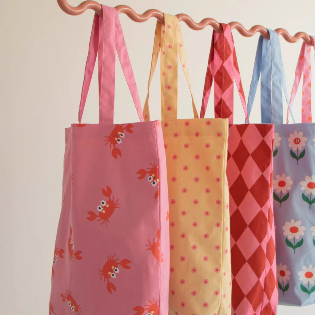Vrolijke, ruime shopper van 100% katoen met lange hengsels zodat je tas over je schouder kunt dragen. Perfect voor boodschappen, een dagje weg of als dagelijkse tas.